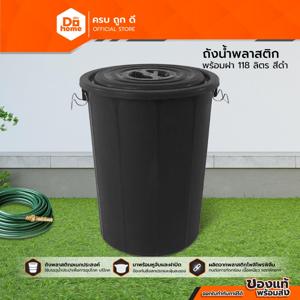 DECOS ถังน้ำพลาสติก 118 ลิตร พร้อมฝา สีดำ |BAI|