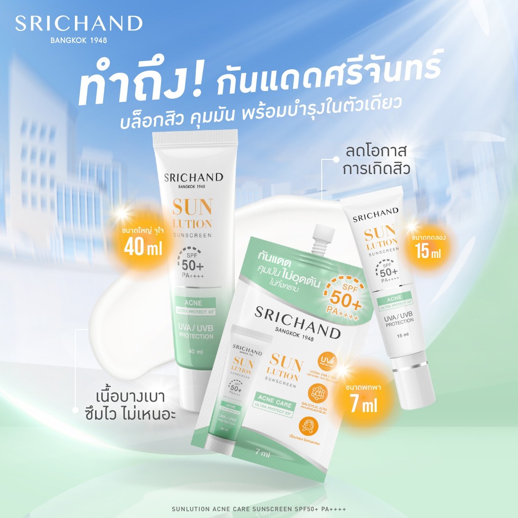 ศรีจันทร์ ซันลูชั่น สกิน ไวท์เทนนิ่ง ซันสกีน SPF50+ ผลิตภัณฑ์ปกป้องแสงแดดสำหรับผิวหน้า (ขนาด 7 มล. X 6 ชิ้น/ยกกล่อง)