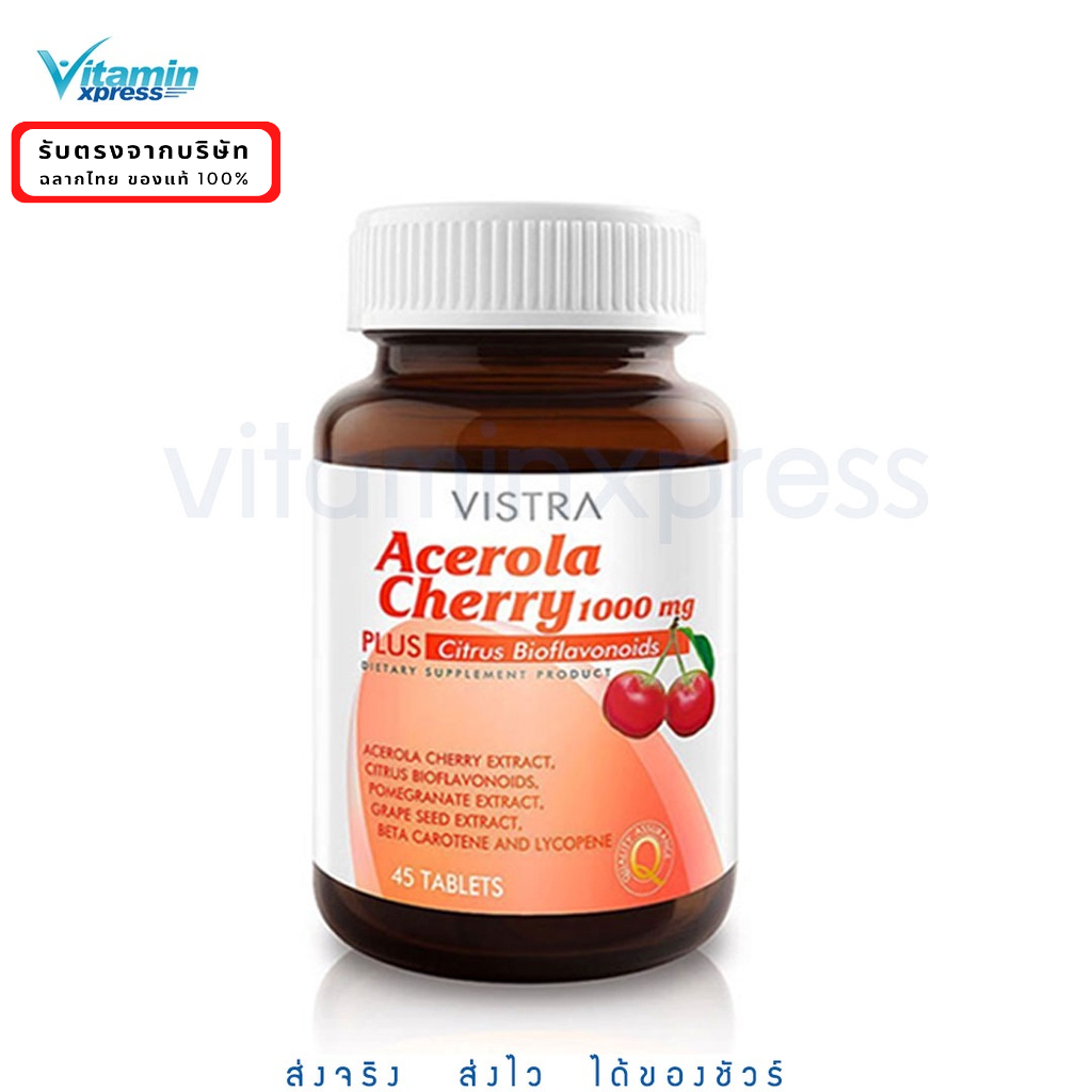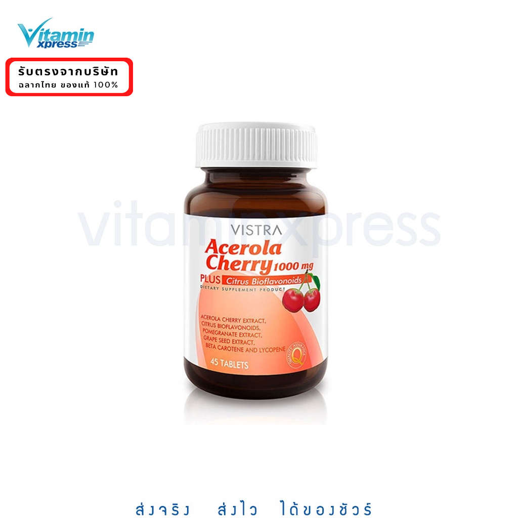 New user - Vistra Acerola cherry 1000 mg. 45 เม็ด วิสทร้า วิสตร้า วิตามินซี อะเซโรล่า เชอรี่ บำรุงผิว กระจ่างใส ผิวขาว