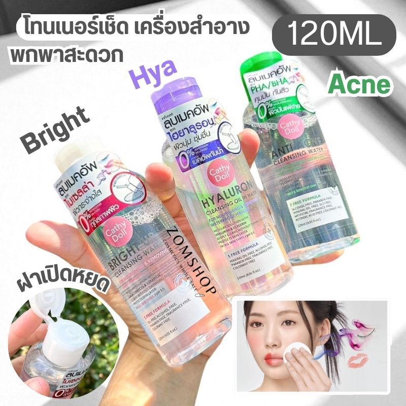 Cathy Doll เช็ดเครื่องสำอาง【มี3สูตร】ลบเมคอัพ อ่อนโยนต่อผิวหน้า Cleansing Water 120ml