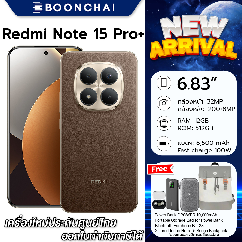ใหม่ Redmi Note 15 Pro+ 5G 12+512GB หน้าจอ6.83" Snapdragon 7s Gen 4 กล้อง200MP แบต6500mAh ออกใบกำกับภาษีได้