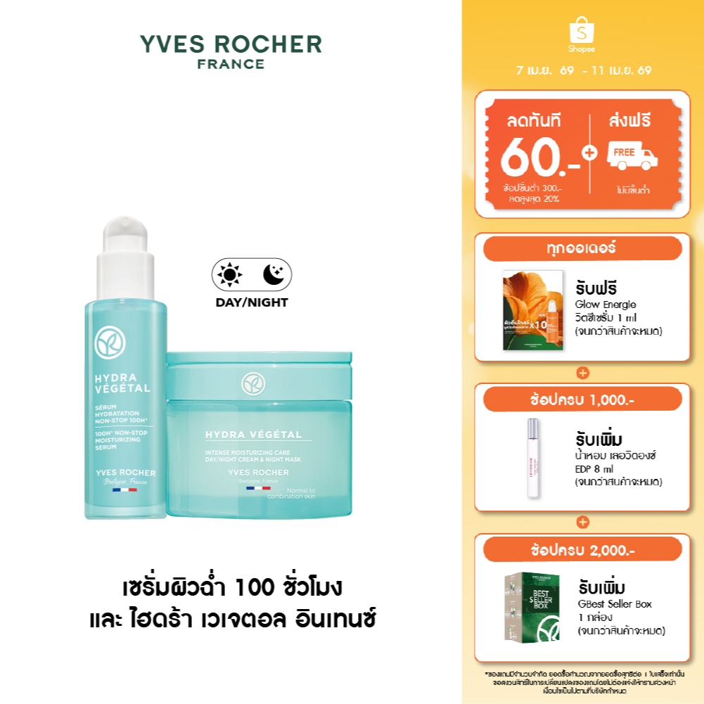 [แพ็คคู่] อีฟ โรเช Yves Rocher Hydra Vegetal 100H Non-Stop Moisturizing Serum 30ml และ Intense Moisturizing Care 75ml