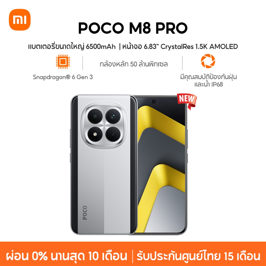 [NEW] Xiaomi POCO M8 Pro แบตเตอรี่ขนาดใหญ่ 6500mAh Snapdragon® 7s Gen 4 มีคุณสมบัติป้องกันฝุ่นและน้ำ IP68