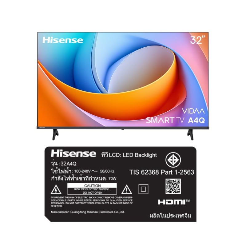 Hisense ทีวี A4Q สมาร์ททีวี 32 นิ้ว VIDAA HD LED รุ่น 32A4Q ปี 2025
