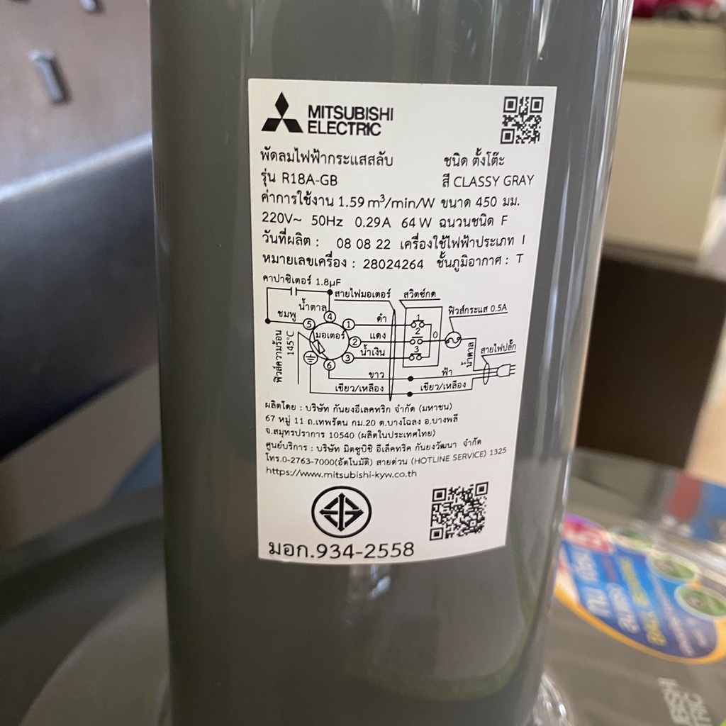 พัดลมสไลด์ มิตซูบิชิ Mitsubishi 18 นิ้ว สีเทา รุ่น R18A-GB CY-GY พร้อมส่ง