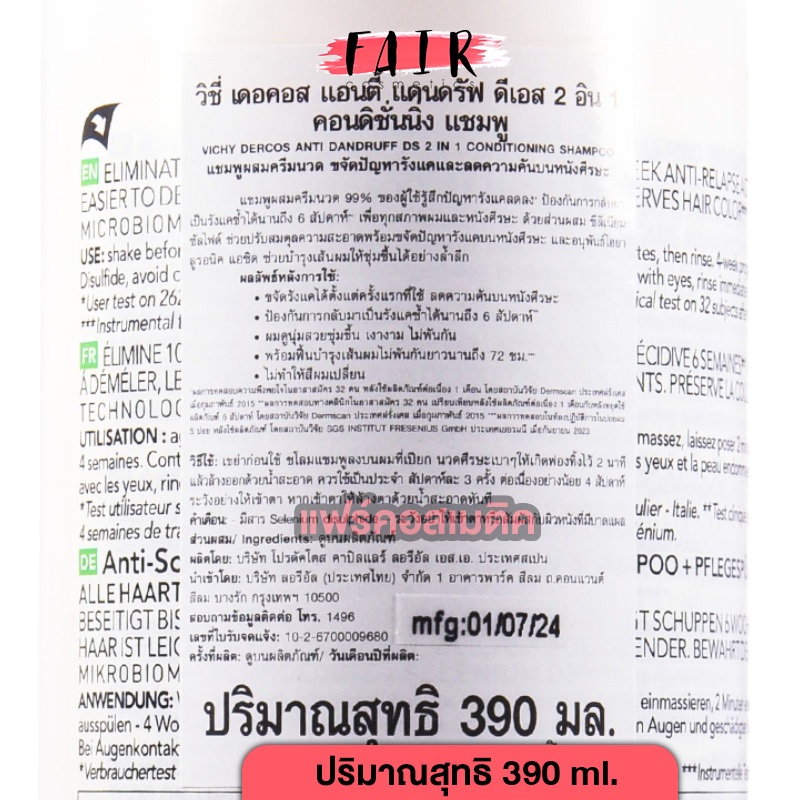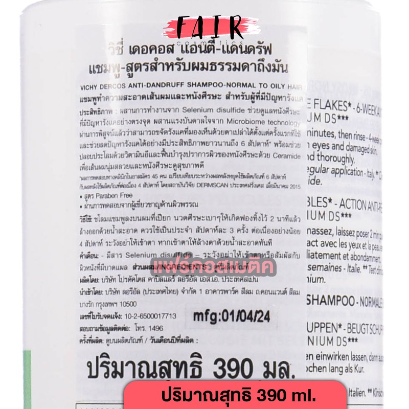 [*ของแท้ ฉลากภาษาไทย][ขวดใหญ่สุด] Vichy Dercos Anti Dandruff Shampoo/2in1 Conditioning Shampoo