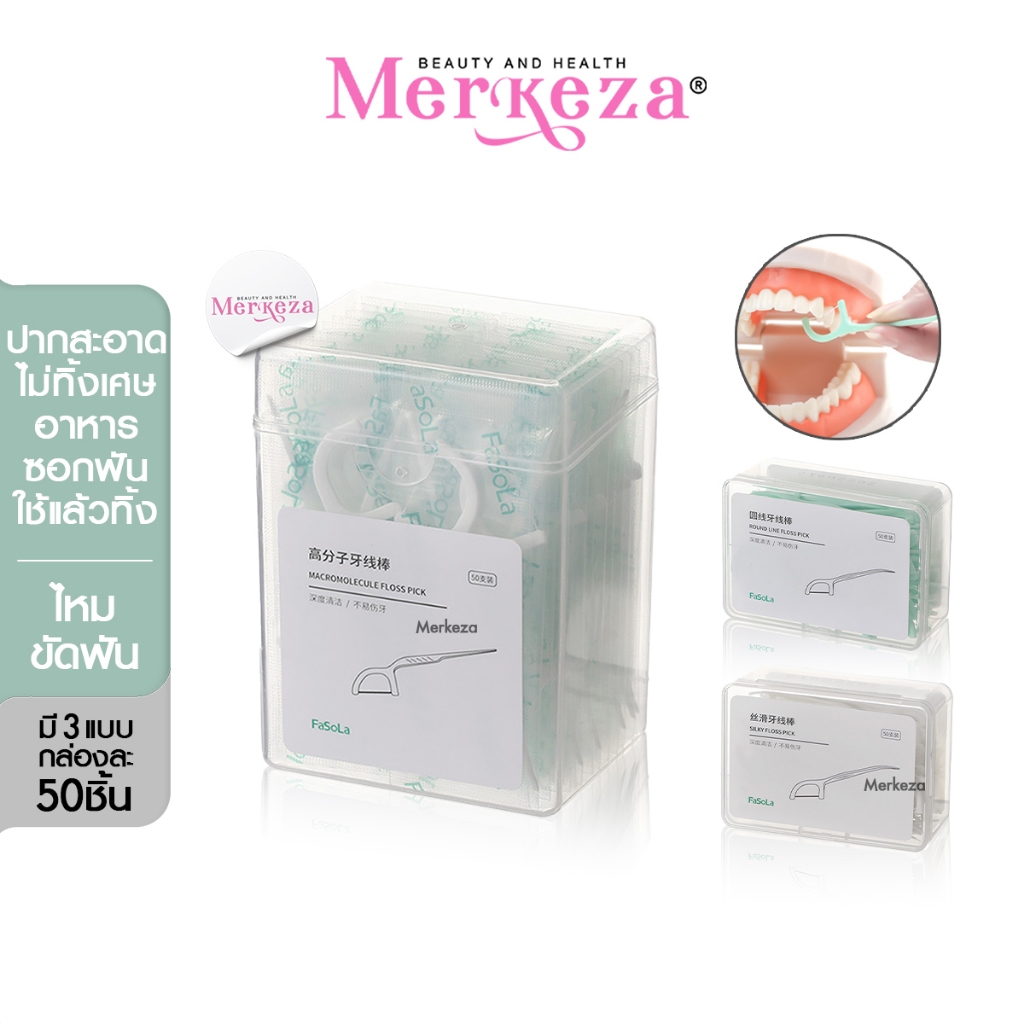 Merkeza ไหมขัดฟัน พกพา ใช้แล้วทิ้ง สุขภาพช่องปาก ฟัน มีด้ามจับ ฟันสะอาด ทานอาหาร