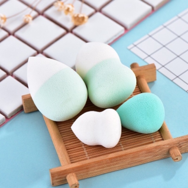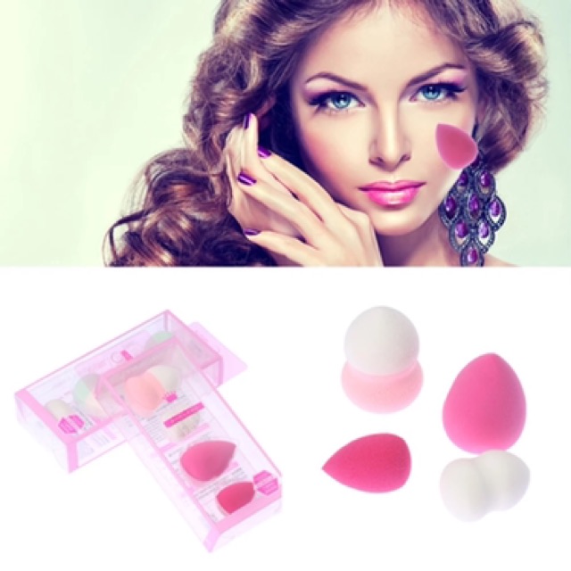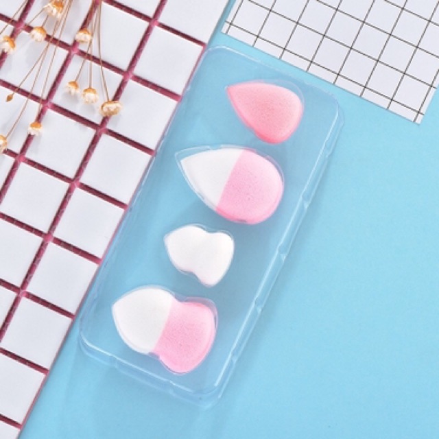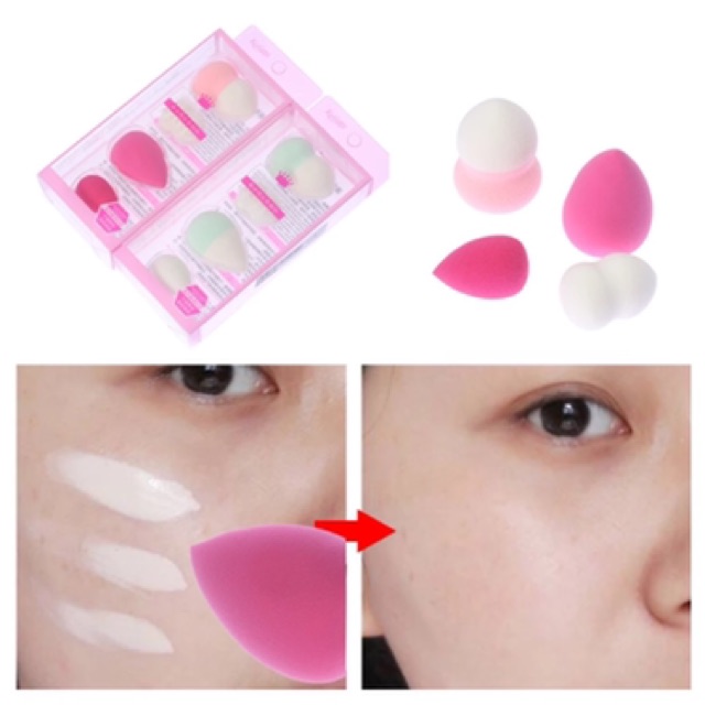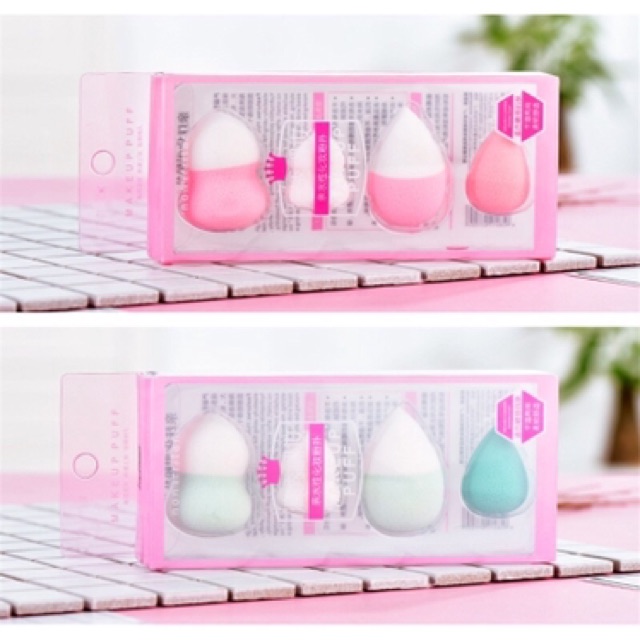 Box Set พัฟฟองน้ำไข่+พัฟฟองน้ำทรงหยดน้ำ 4 ชิ้น 2 ขนาด