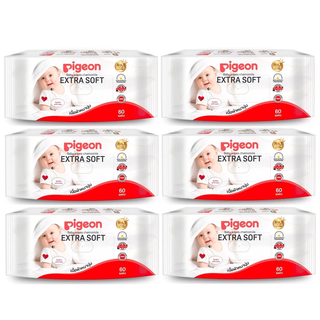Pigeon ผ้าเปียกพีเจ้น สูตรคาโมมายล์ ขนาด 60 ชิ้น (6ห่อ)