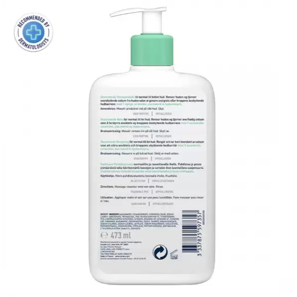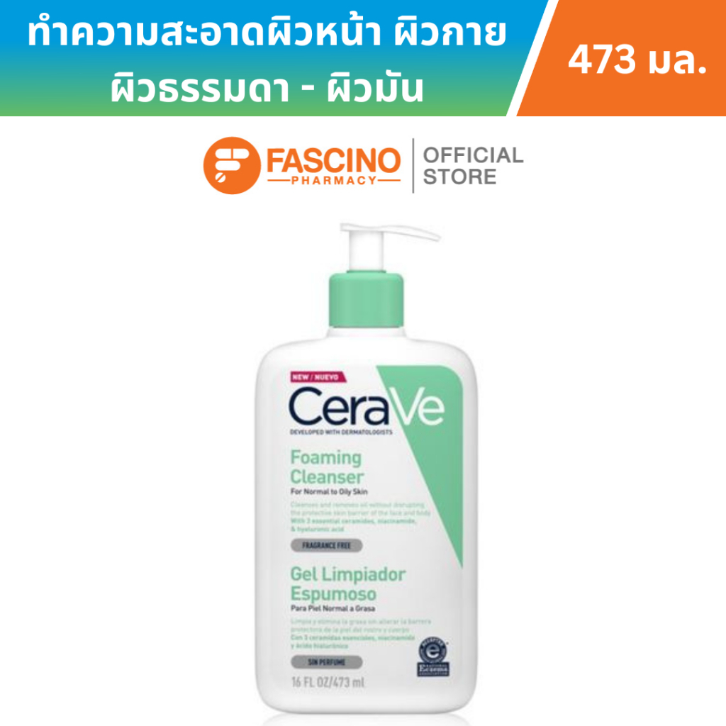 CeraVe Foaming Cleanser โฟมทำความสะอาดผิวหน้าและผิวกาย สำหรับผิวธรรมดา-ผิวมัน เป็นสิวง่าย (473 มล.)