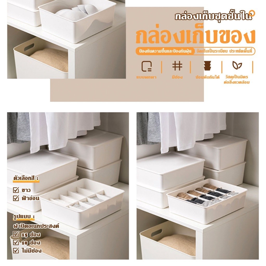 กล่องเก็บชุดชั้นใน กล่องเก็บถุงเท้า ตู้เสื้อผ้ากล่องเก็บของ กล่องแบ่ง ตะกร้าเก็บชุดชั้นในถุงเท้า