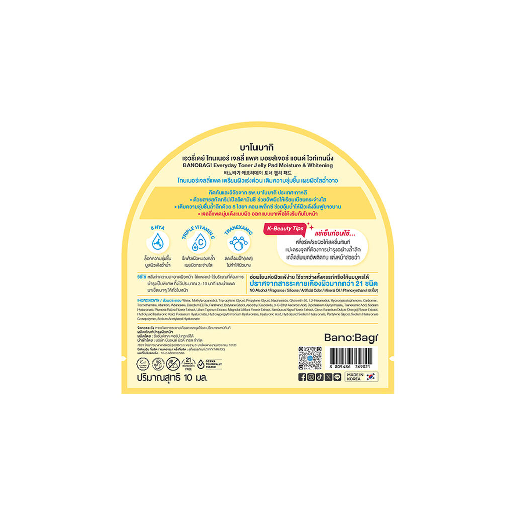 Banobagi บาโนบากิ เอวรี่เดย์ โทนเนอร์ เจลลี่ แพด มอยส์เจอร์ แอนด์ ไวท์เทนนิ่ง 4 แผ่น