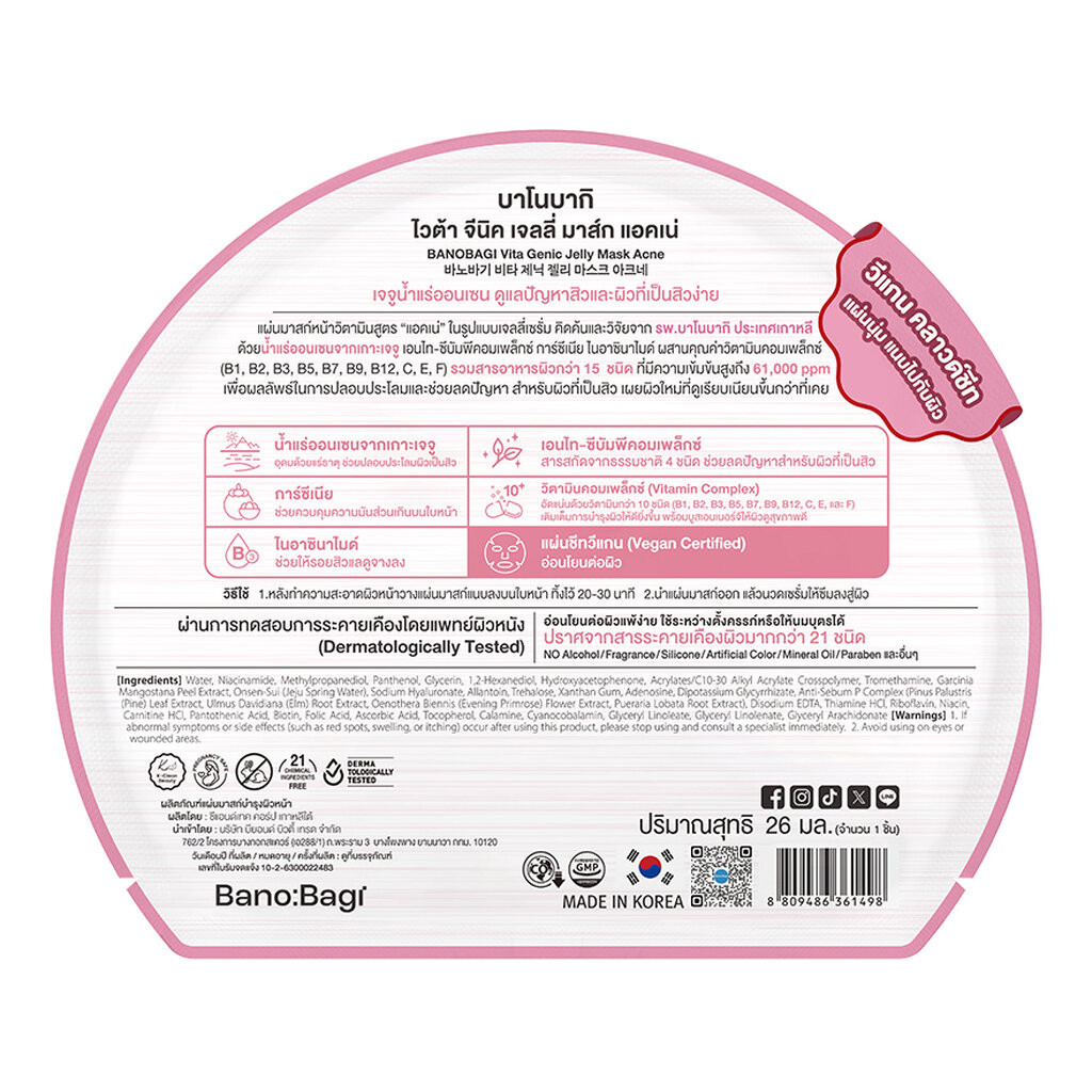 Banobagi บาโนบากิ ไวต้า จีนิค เจลลี่ มาส์ก แอคเน่ 1 แผ่น