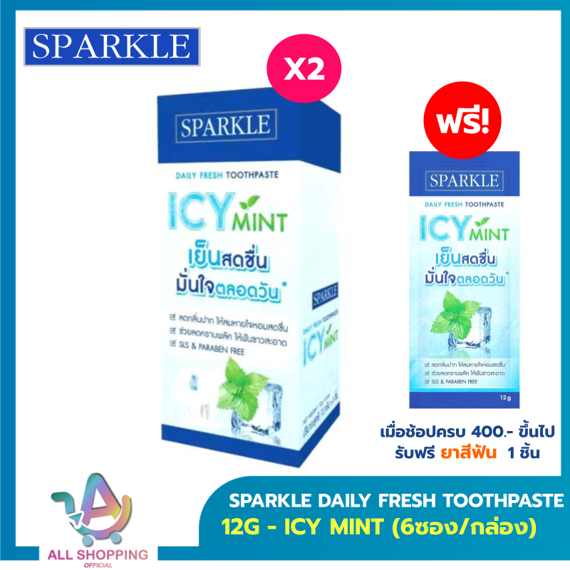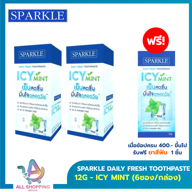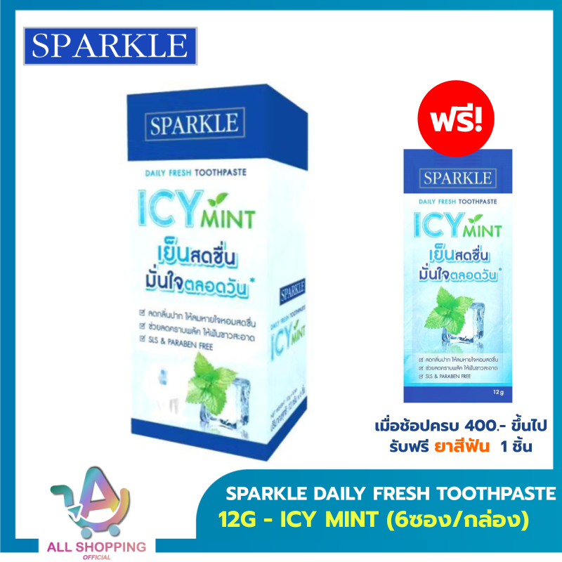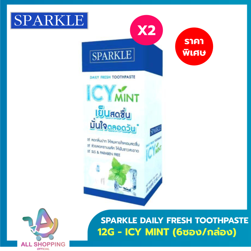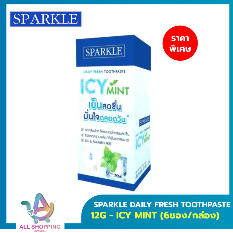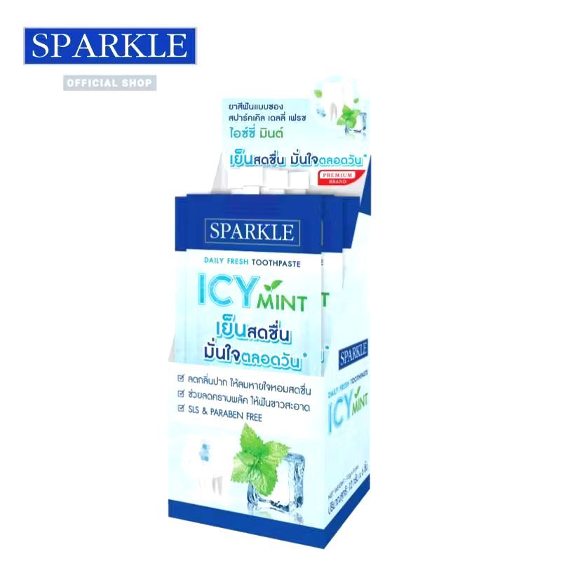 SPARKLE ยาสีฟัน DAILY FRESH TOOTHPASTE 12G - ICY MINT (SACHET) (แบบกล่อง) สปาร์คเคิล เดลลี่ เฟรช ทูชเพสท์ ไอซ์ซี่ มินต์