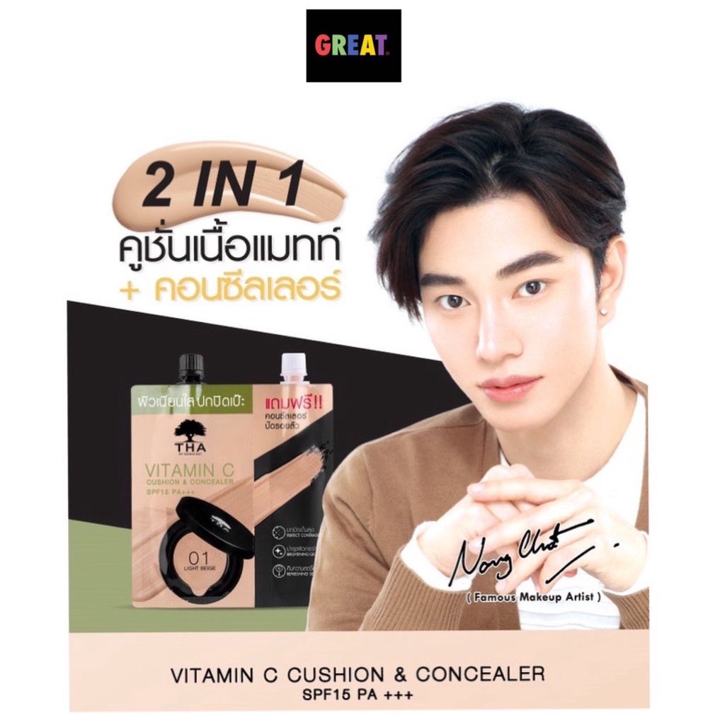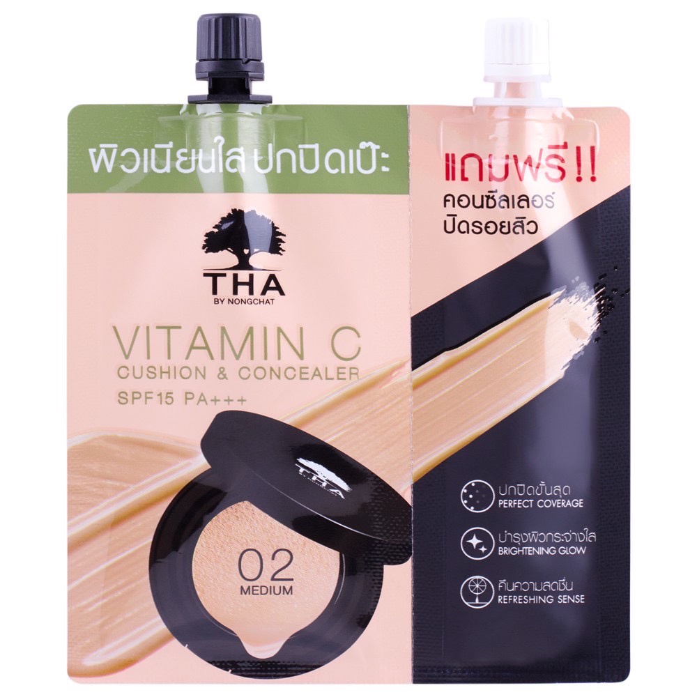วิตามินซีคูชั่นแอนด์คอนซีลเลอร์ (7g+2g) ฑาบายน้องฉัตร SPF15PA+++ THA BY NONGCHAT Vitamin C Cushion Concealer