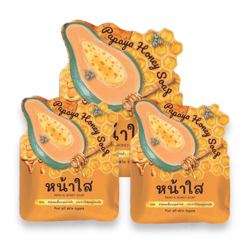 สบู่มะละกอน้ำผึ้งหน้าใส New Princess (papaya honey soap)(แพ็คเกจใหม่)