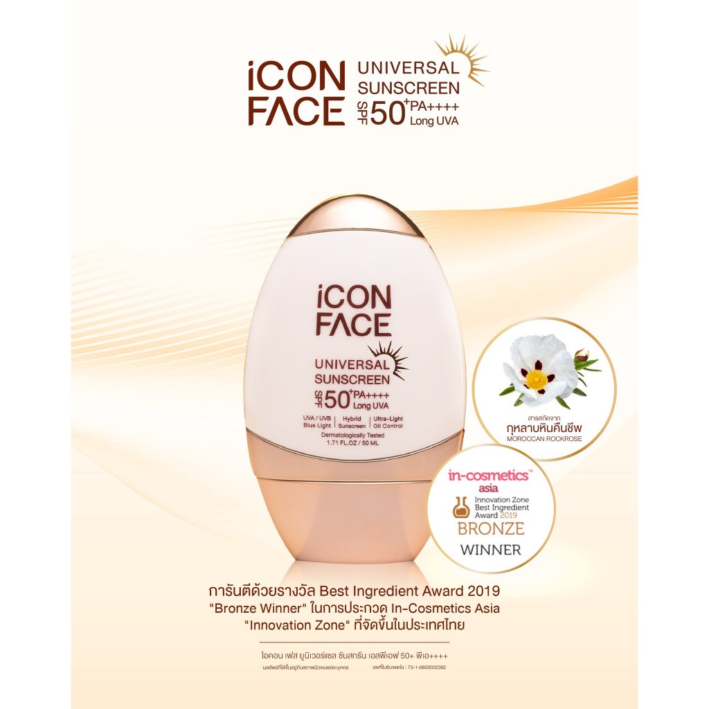 ครีมกันแดด ไอคอน เฟส iCon Face Universal Sunscreen SPF 50+ PA+++ the icon เนื้อครีมบางเบา ของแท้100%