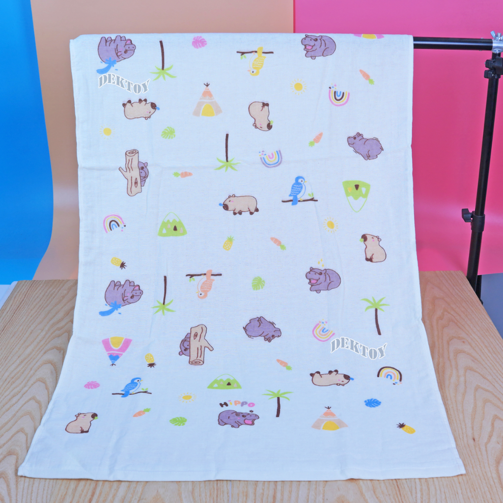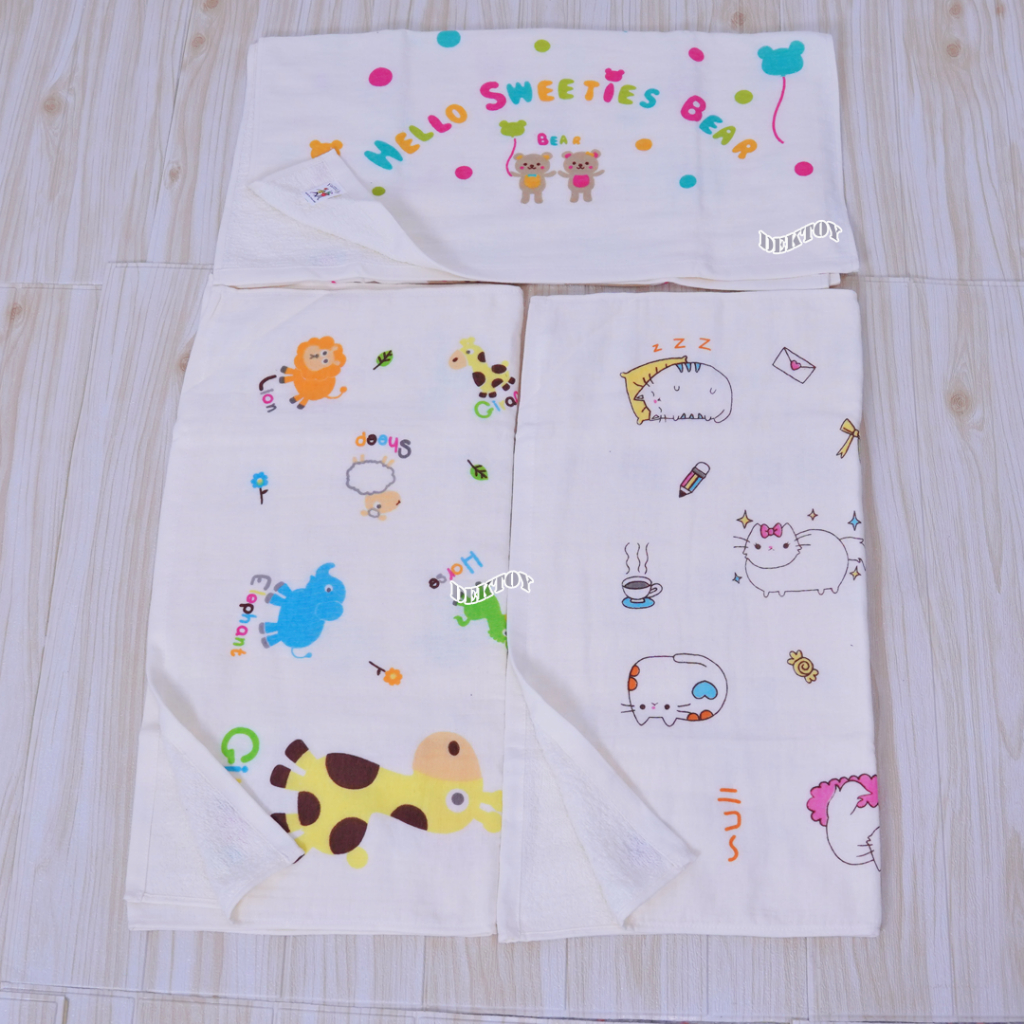 ผ้าเช็ดตัวเด็ก2หน้า ผ้าสาลู ผ้าขนหนู ไซส์ 60 x 120 ซม.