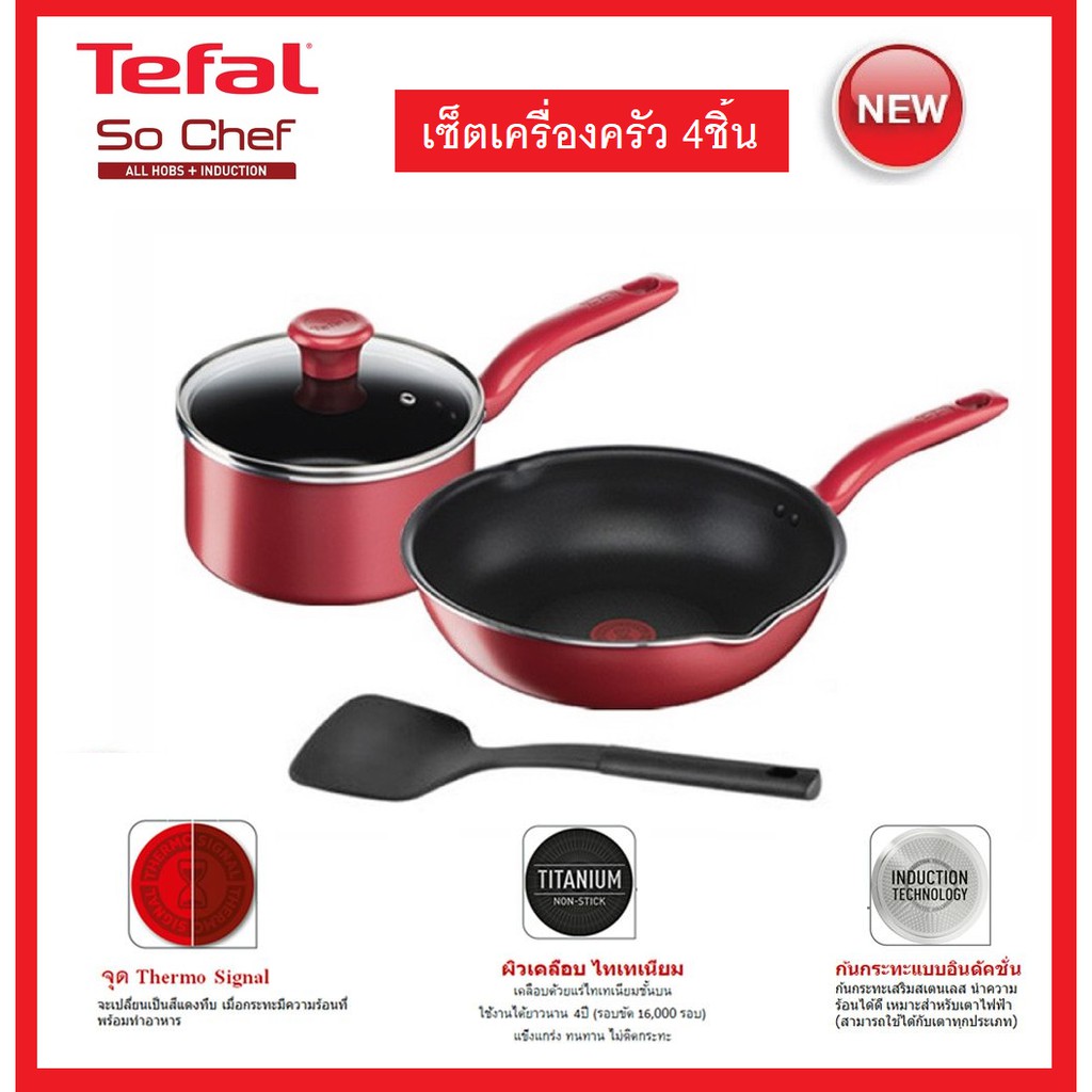 🔥🔥Tefal เซ็ตอุปกรณ์ทำอาหาร ก้นอินดักชั่น So Chef 4 ชิ้น (So Chef Set 4 Pcs.) G135S495 / G135S496 รับประกันศูนย์2ปี
