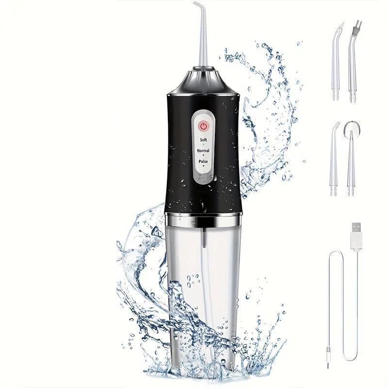 Rechargeable Water Flosser, Portable Oral Irrigator with 4 Counts Jet Tips, Waterproof Teeth Cleaner, 3 Modes Teeth Cleaning Tool for Home & Travel, Mouth Hygiene Kit, Dental Kit, Gentle Oral Care Tool, Oral Care Set, Cordless Water Flosser