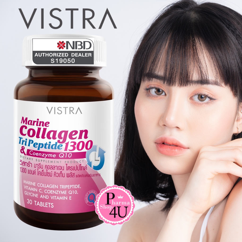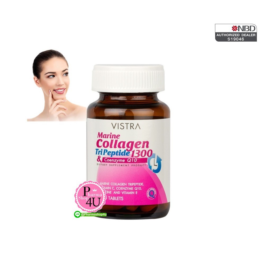 Vistra Marine Collagen Tri Peptide 1300 & Coenzyme Q10 วิสทราคอลลาเจน 30เม็ด#3730