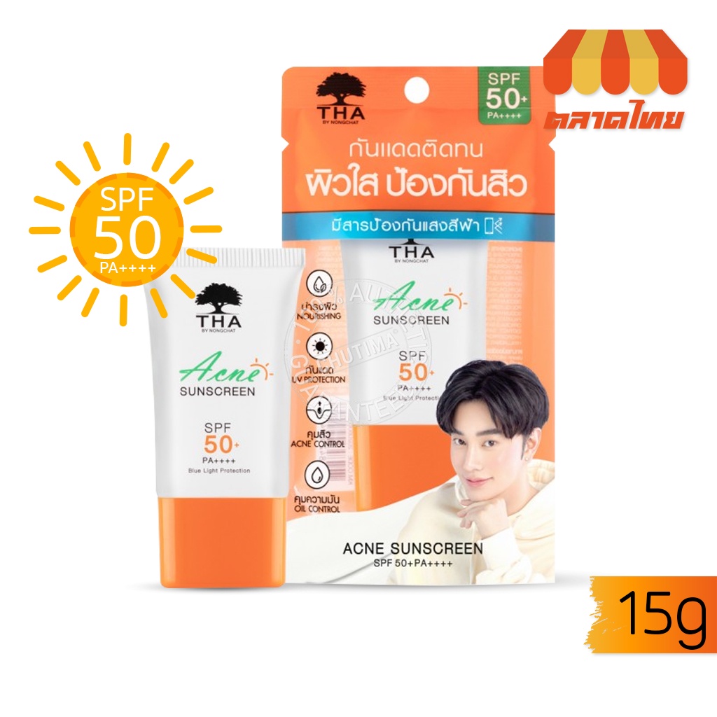 [ใหม่]❗❗ ครีมกันแดด แอคเน่ซันสกรีน ฑาบายน้องฉัตร THA BY NONGCHAT SPF50+/PA++++ 15g.