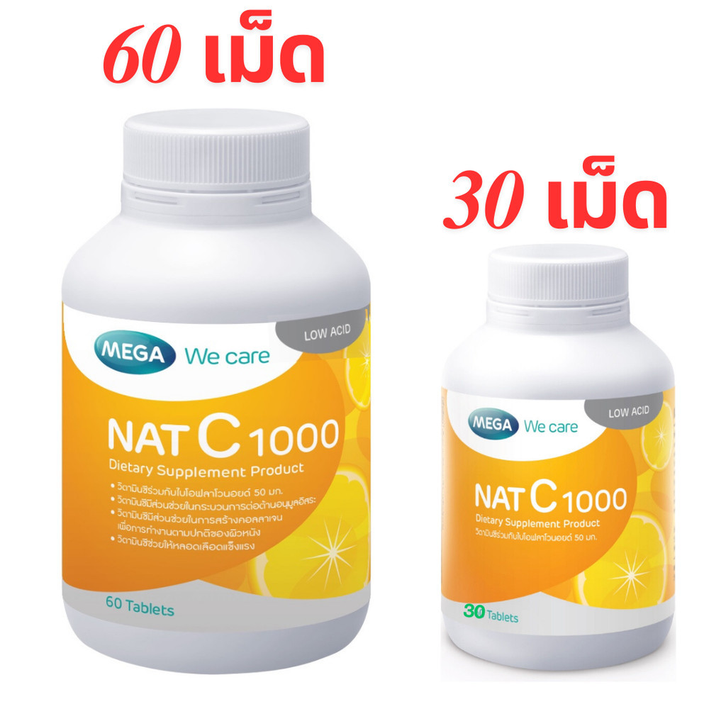 MEGA We Care NAT C 1000 เมก้าวีแคร์ แนทซี 1000 วิตามินซี 1000 มก.ขนาด 60 เม็ด [PC]