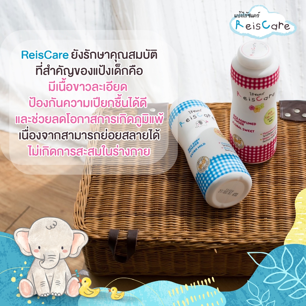 ReisCare Rice Baby Powder Extra Mild ไร้ซแคร์ ไรซ์ เบบี้ พาวเดอร์ เอ็กซ์ตร้า มายด์ [ 130 g. ] แป้งเด็ก แป