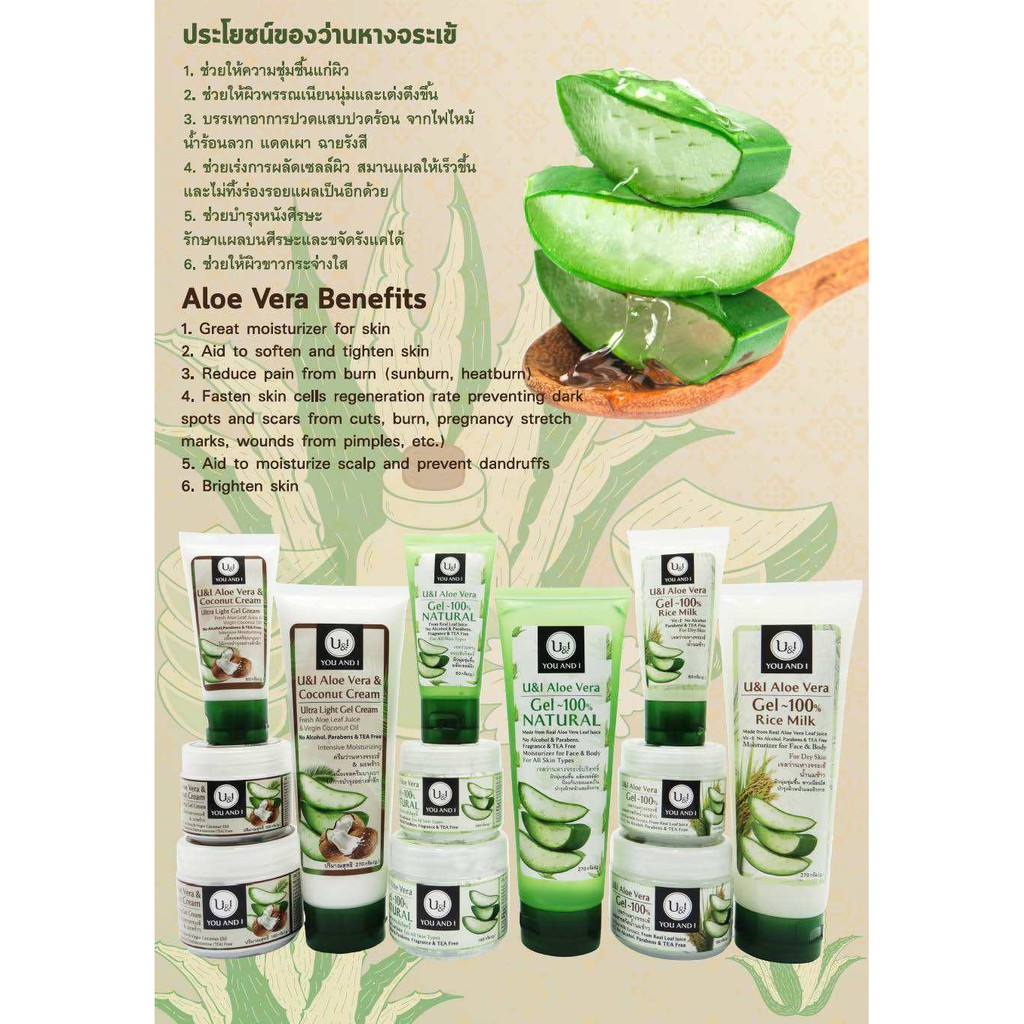 U&I Aloe Vera Gel 270g. ยูแอนด์ไอ เจลว่านหางจระเข้ 270กรัม.