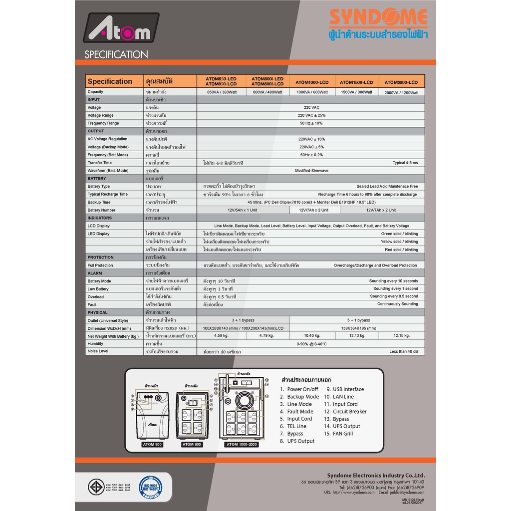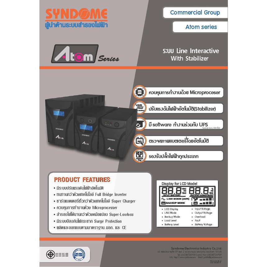 SYNDOME UPS ATOM-850i LCD (850VA/480WATT) ประกันศูนย์ 2 ปี