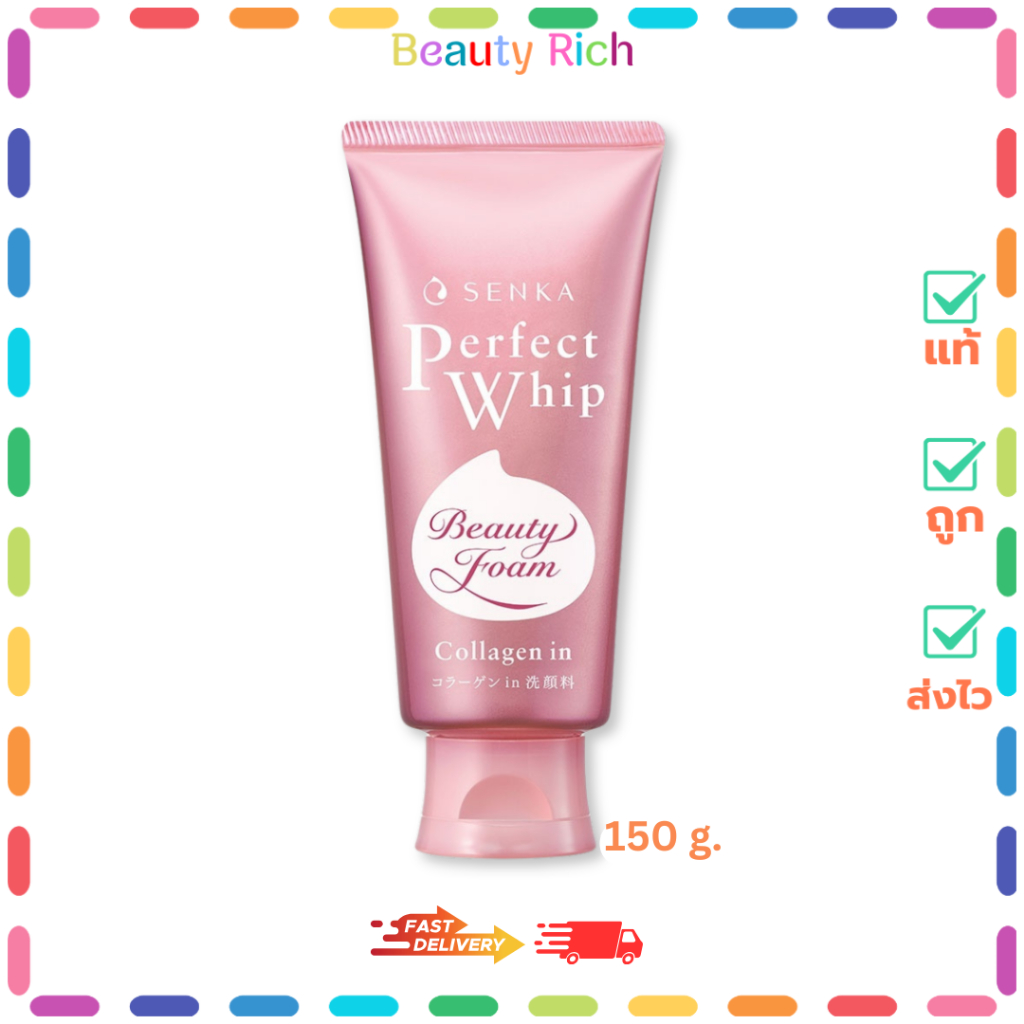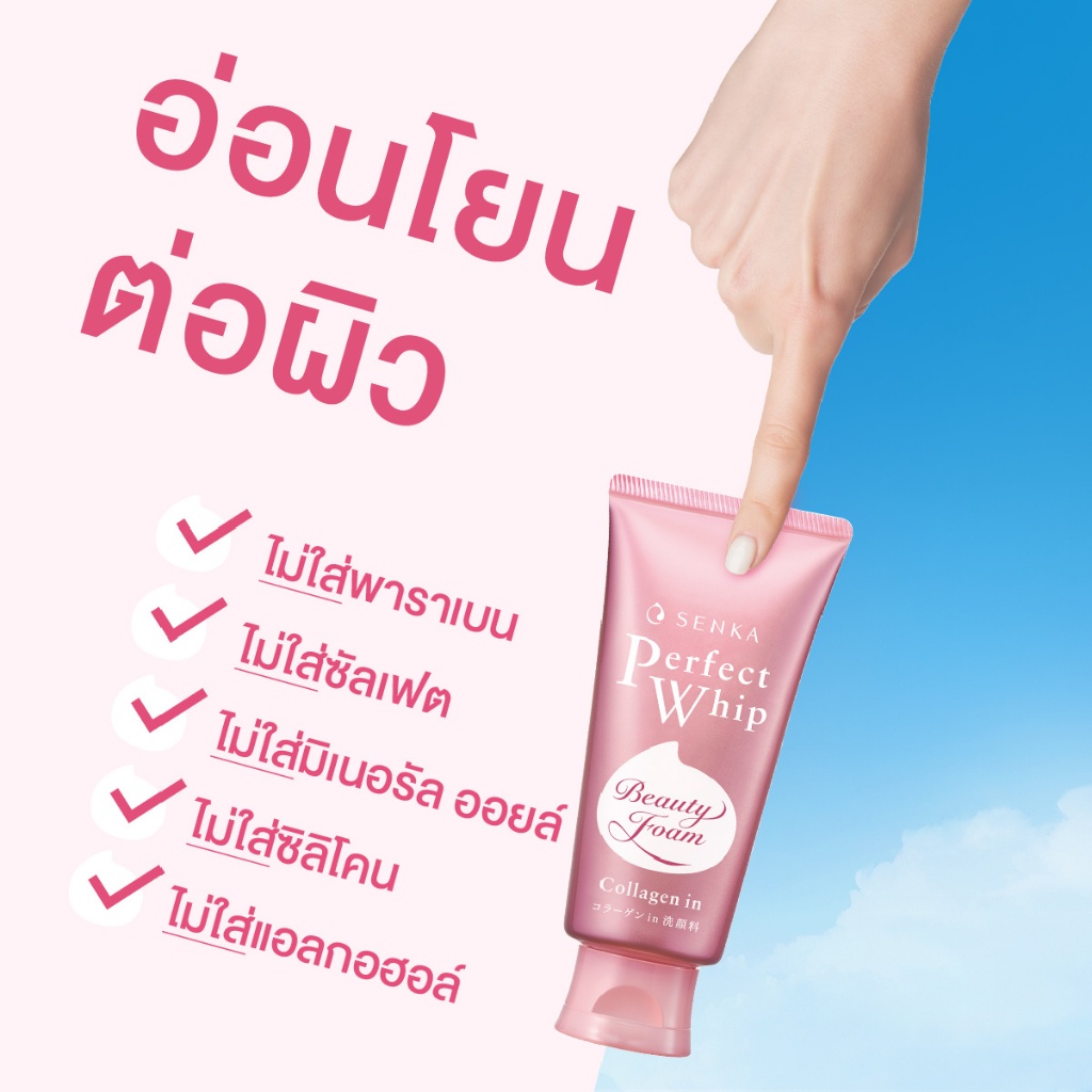 (1 หลอด) SENKA Perfect Whip Foam วิปโฟมล้างหน้า #หลอดชมพู สูตรคอลลาเจน (ปริมาณ 150 g. )