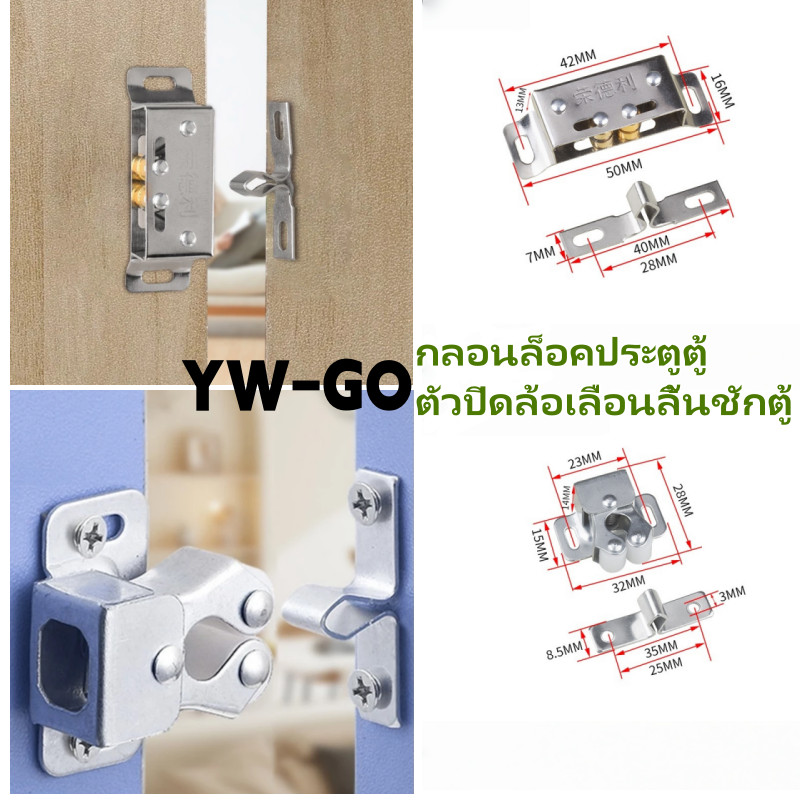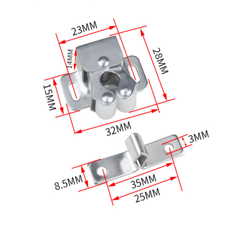 กลอนล็อคประตูตู้ ตัวปิดล้อเลื่อนลิ้นชักตู้ เหล็กแผ่นรีดเย็น ลูกกลิ้งคู่ อุปกรณ์สลักสลักฮาร์ดแวร์ ตัวล็อกล้อเลื่อน G3571