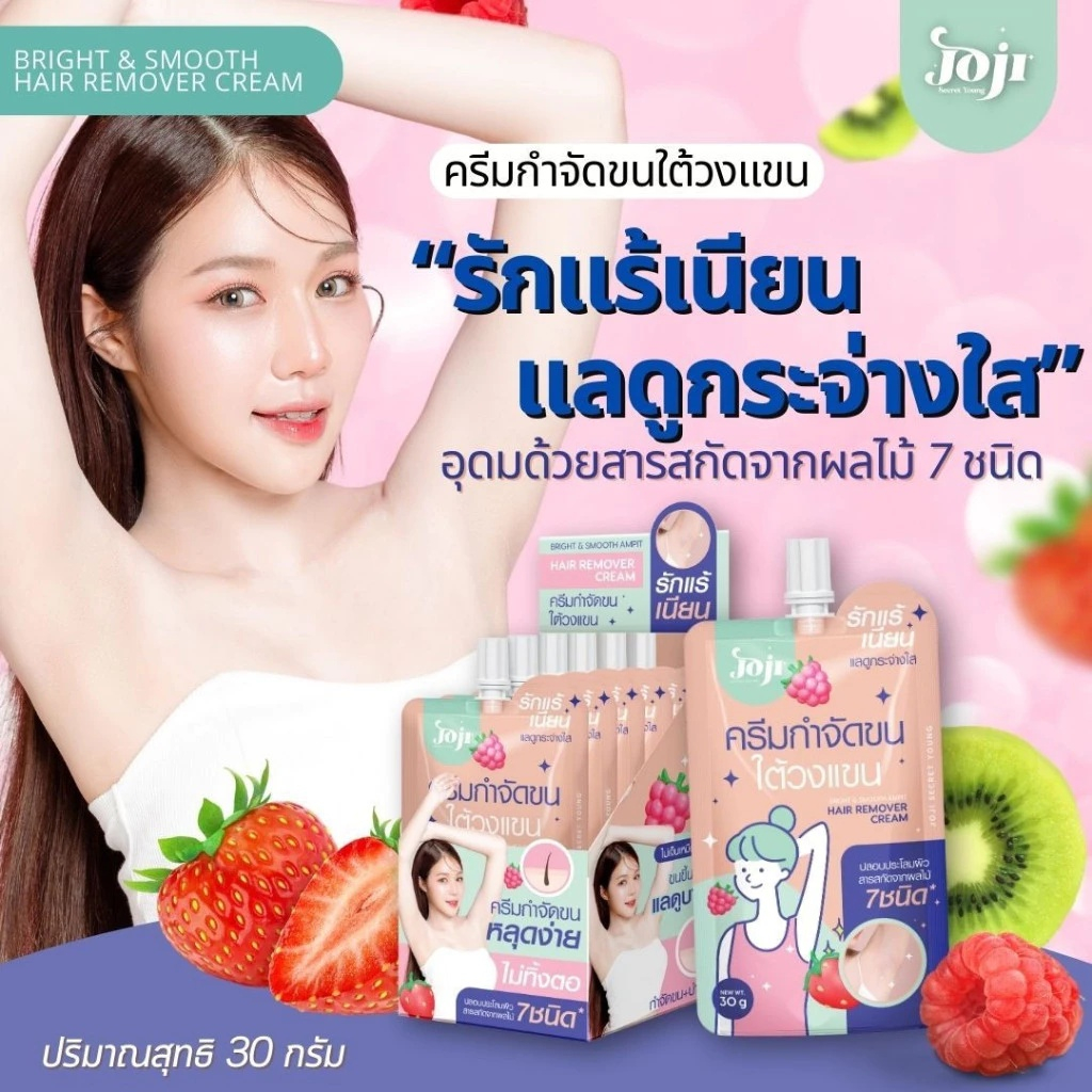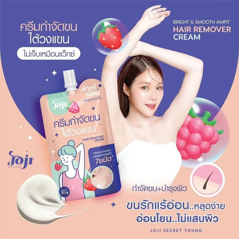 (1 ซอง) Joji Bright & Smooth Armpit Hair Remover Cream (สีครีม) ครีมกำจัดขนใต้วงแขน (30 กรัม)