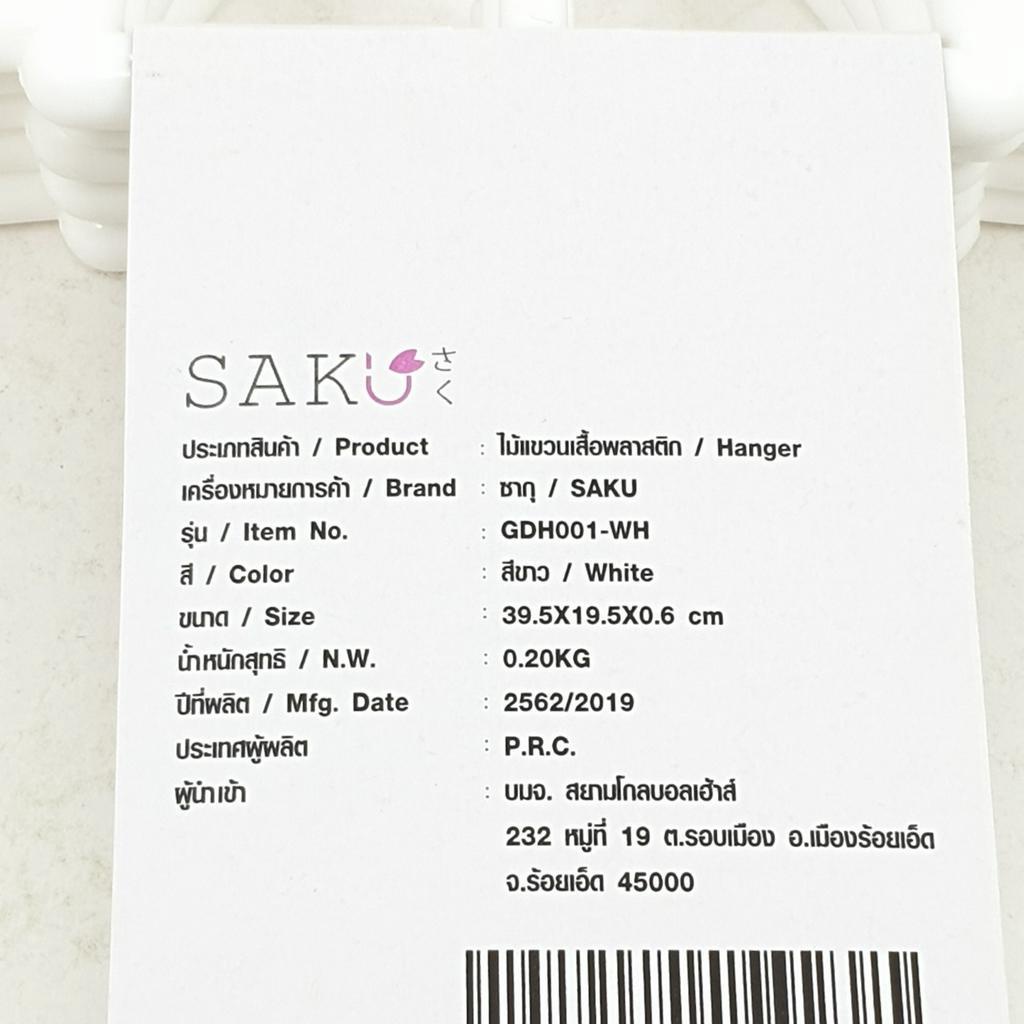 GlobalHouse SAKU ไม้แขวนเสื้อพลาสติก GDH001-WH ขนาด 39.5x19.5x0.6ซม. 5ชิ้น/แพ็ค สีขาว สินค้าของแท้คุณภาพดี