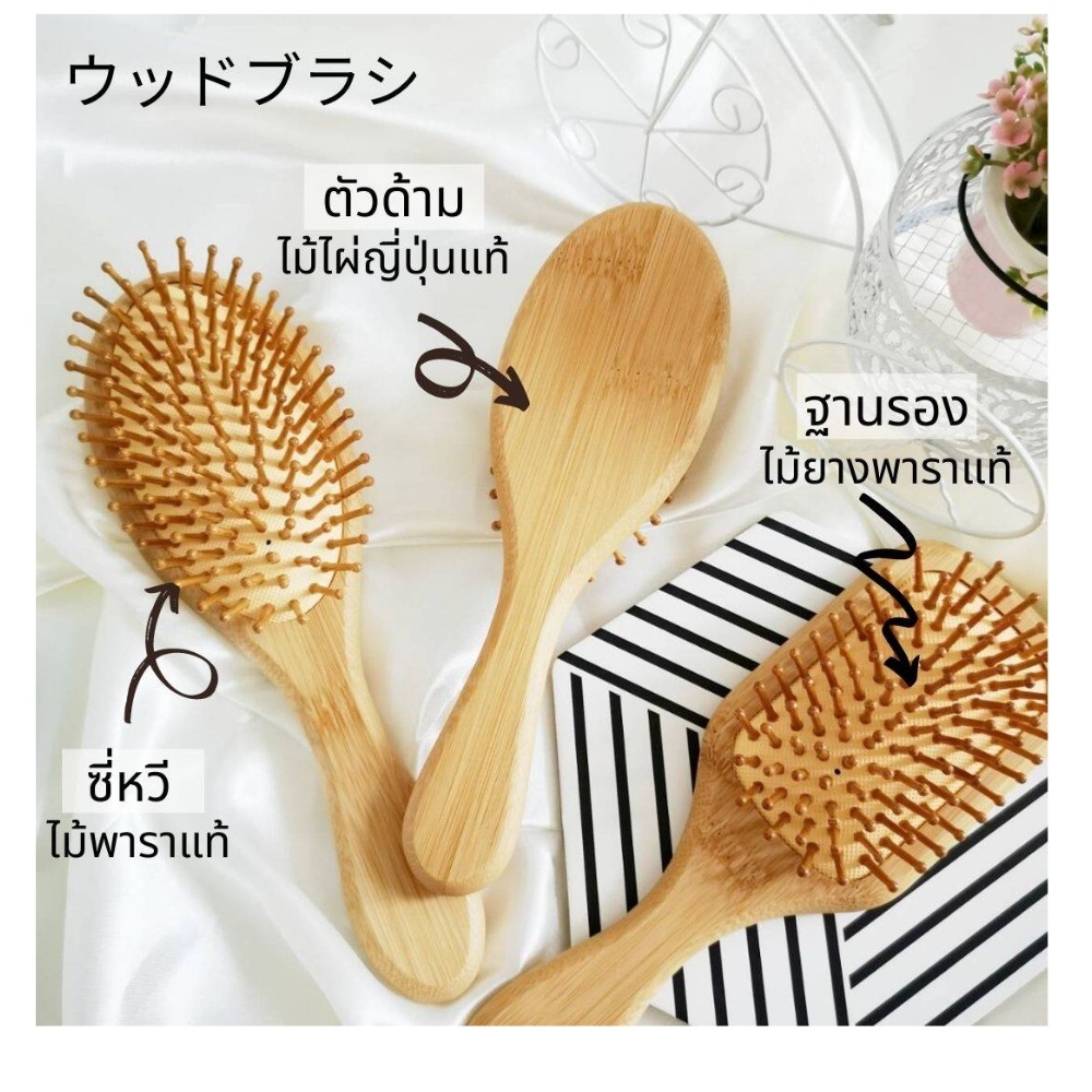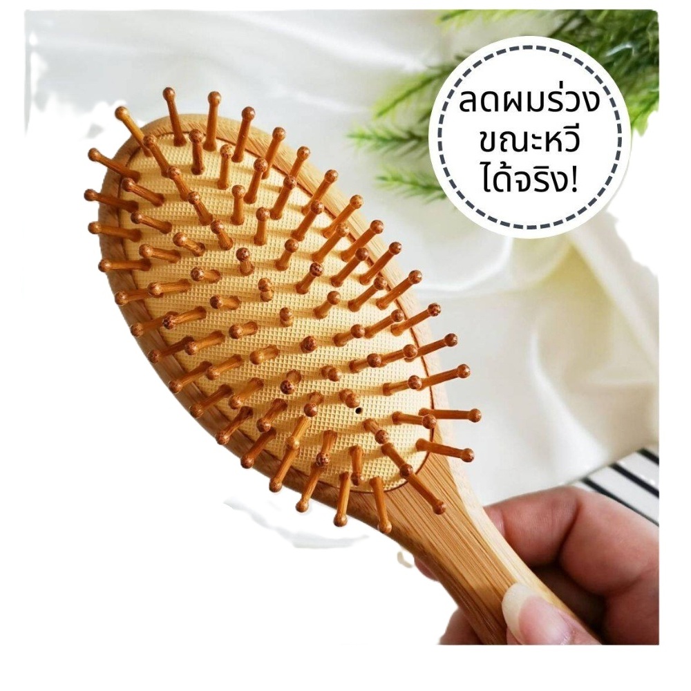 หวีแปรงนวดศรีษะ ด้ามไม้ มีปุ่ม