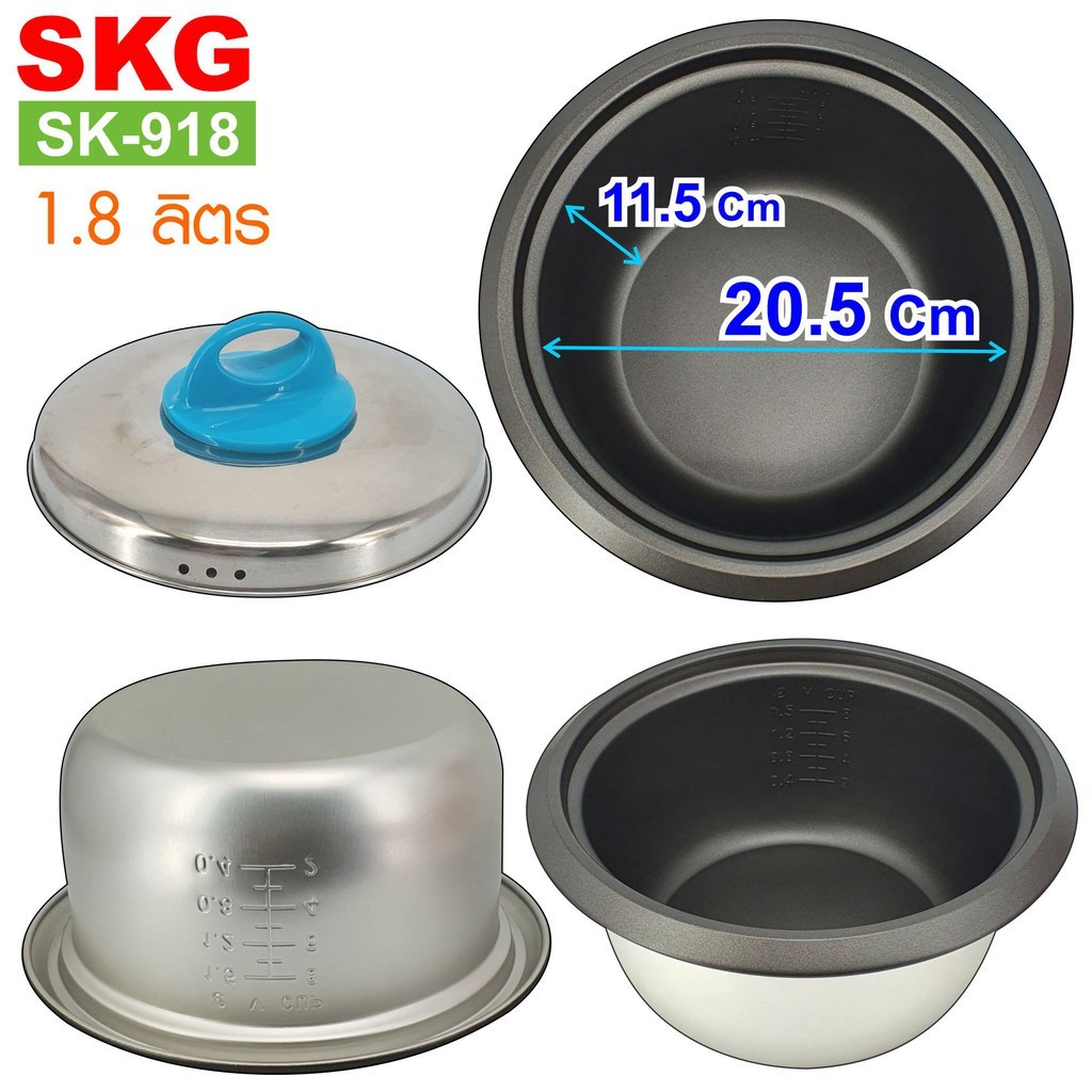 SKG หม้อหุงข้าว 1.8 ลิตร 700W หม้อในอลูมิเนียม เคลือบเทฟล่อน รุ่น SK-918 (มีให้เลือก2สี) รับประกัน 1ปี