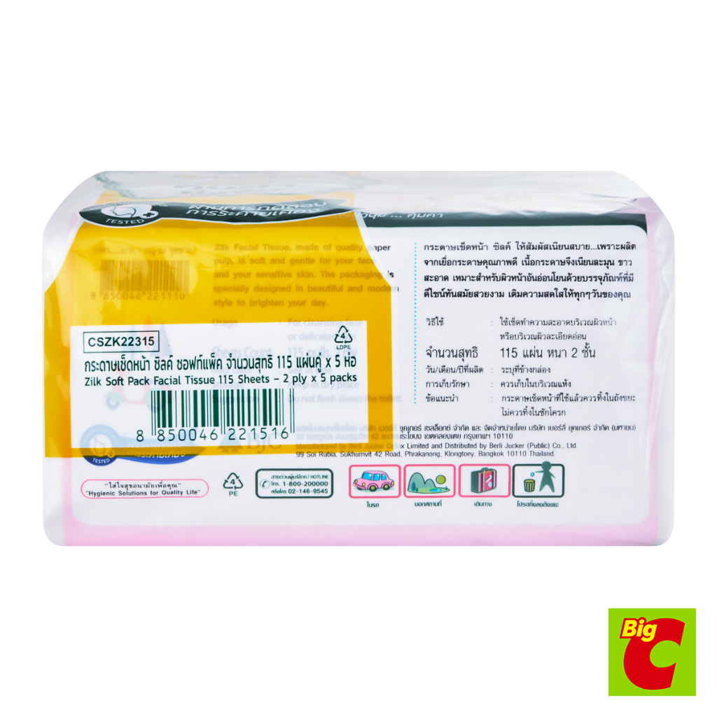 ซิลค์ กระดาษเช็ดหน้า ทราเวลแพ็ค 115 แผ่น x 5 ชิ้น