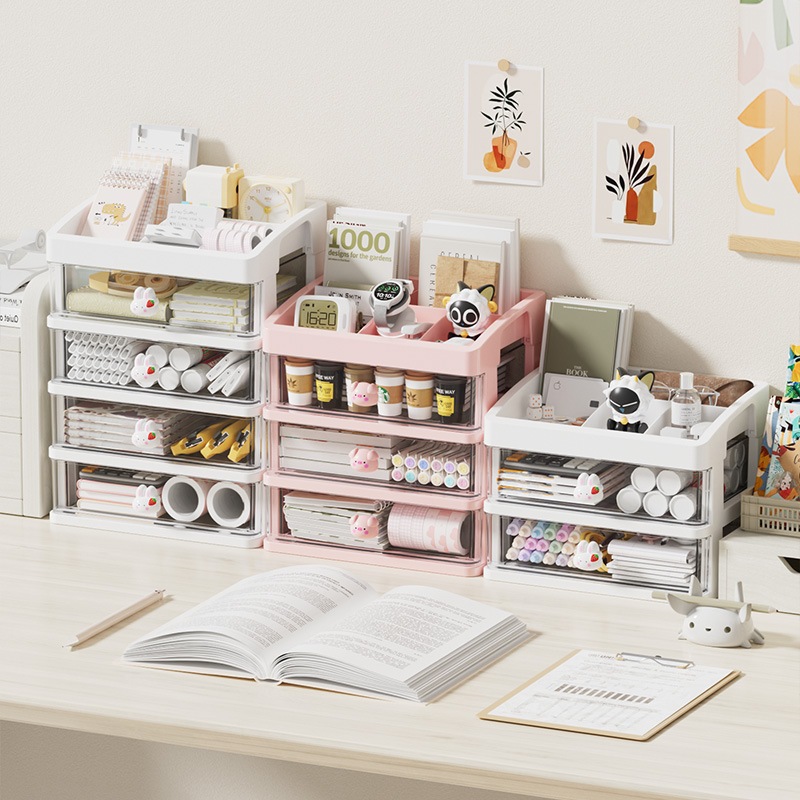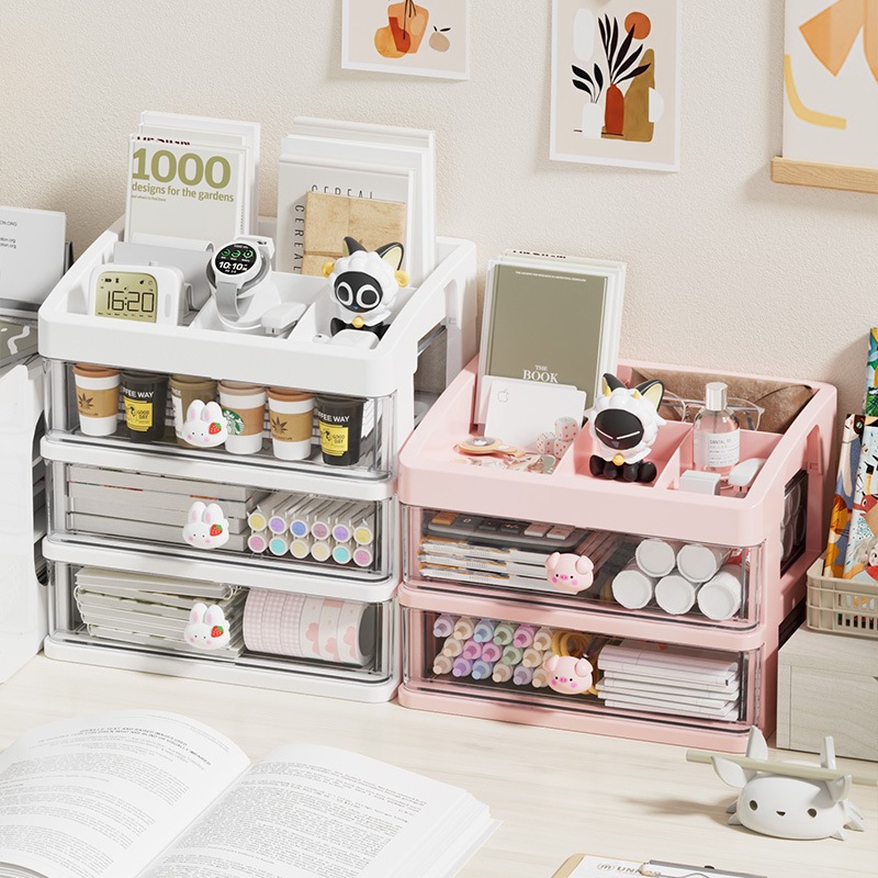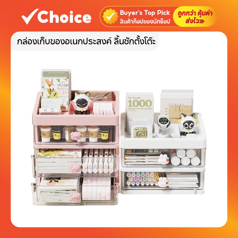 กล่องเก็บของอเนกประสงค์ ลิ้นชักตั้งโต๊ะ ชั้นวางเครื่องสำอาง สำหรับจัดระเบียบของใช้ 3/4/5 ชั้น