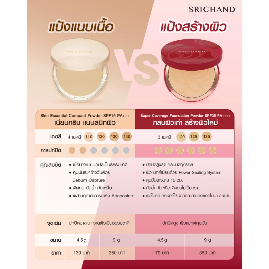 (1 ตลับ) แป้งศรีจันทร์ (ตลับแดง) Srichand Supper Coverage (ขนาดพกพา 4.5 g.)
