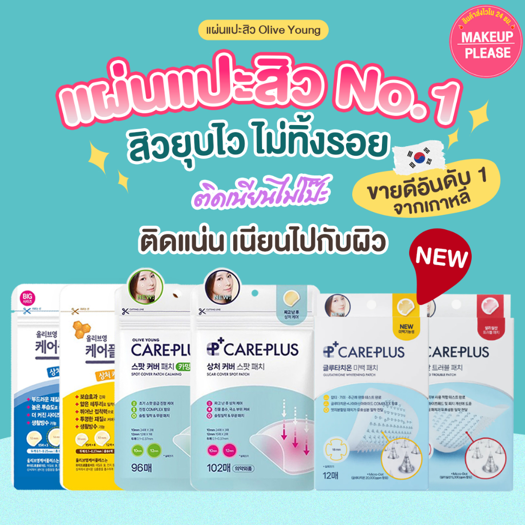 ส่งช้า‼คืนเงิน💸 Olive Young Care Plus Scar Cover Spot Patch, Honey, Big,Calming, Silicylic, Glutathione แผ่นแปะสิว #VV
