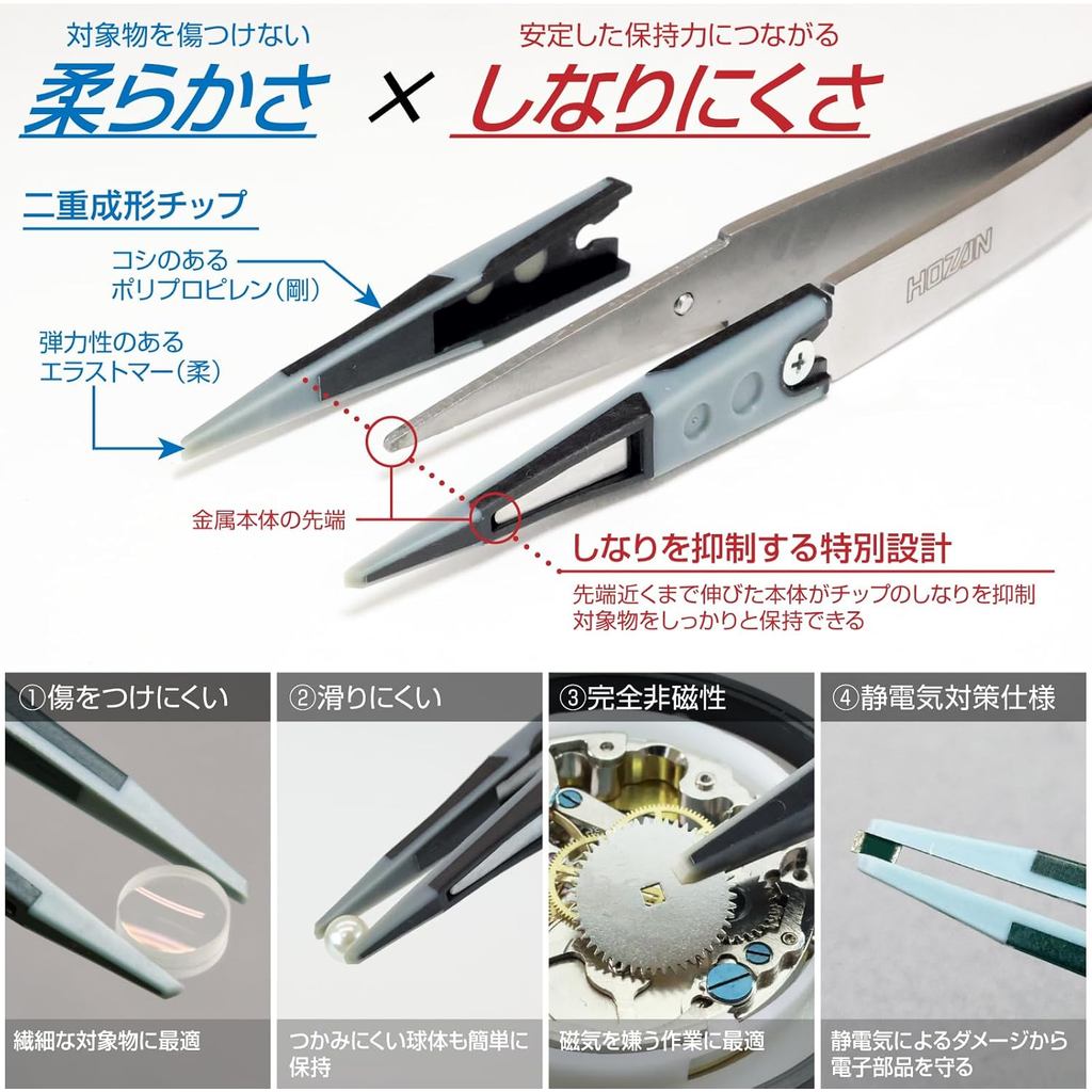 HOZAN ESD คีมปากแหลมซอฟต์ - คีมป้องกันไฟฟ้าสถิตย์ - เครื่องมือจากญี่ปุ่น