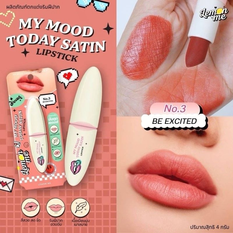 ส่งฟรี/มีไลฟ์ Lemon Me เลม่อน มี มาย มูด ทูเดย์ ซาติน ลิปสติก 4 กรัม 5 เฉดสี LM2004
