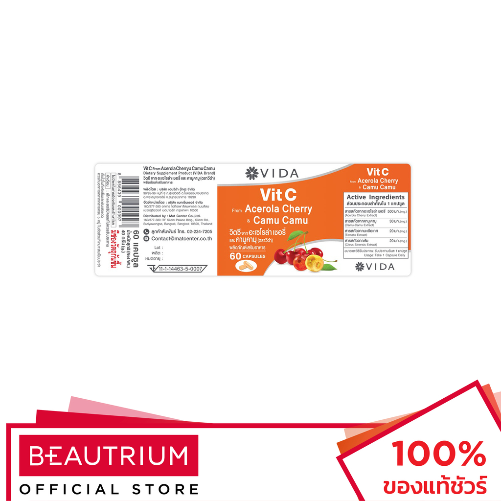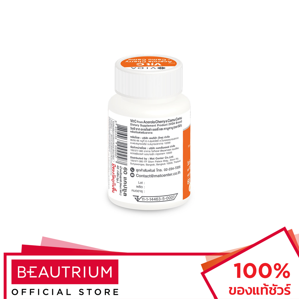 GLUTAMAX Vida Vit C Acerola Cherry Camu Camu ผลิตภัณฑ์เสริมอาหาร 60 capsules
