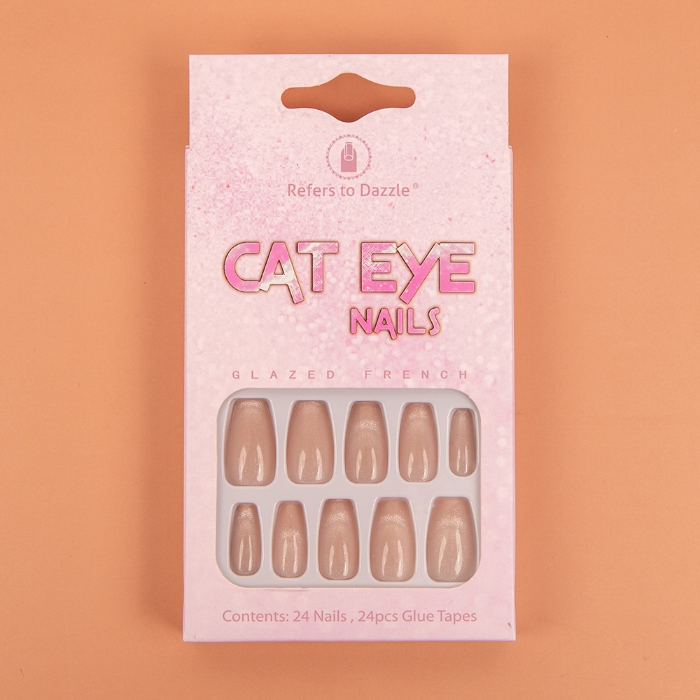 ชุดเล็บปลอมงานพรีเมียม Cat Eye Nails สวยหรูสไตล์ลูกแก้ว บรรจุ 24 ชิ้น