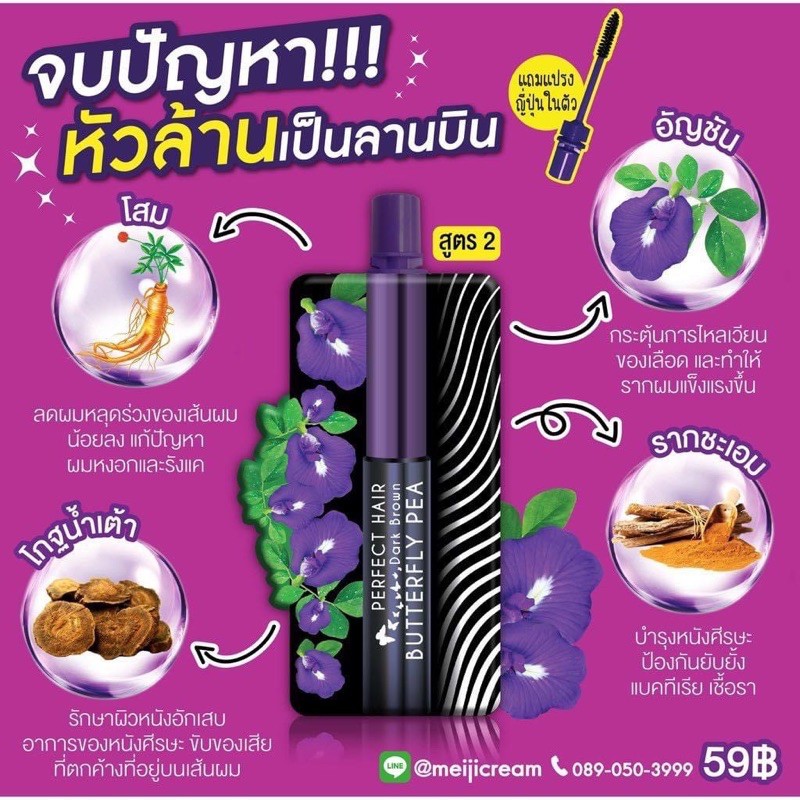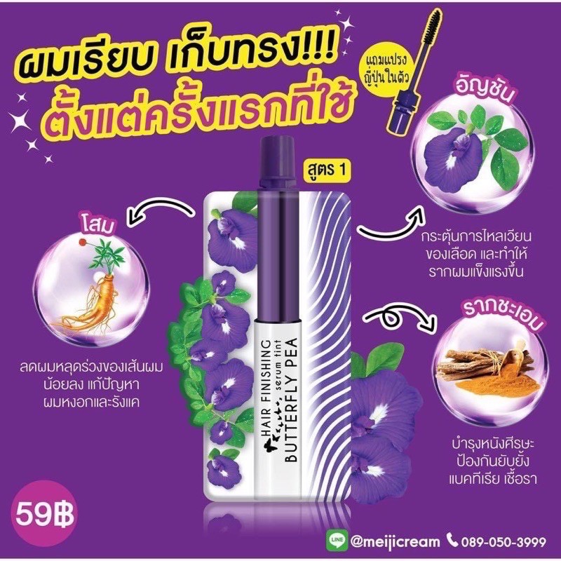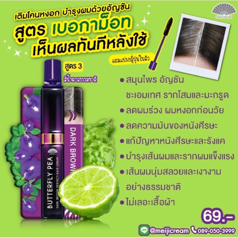 ส่งฟรี/มีไลฟ์ ลด50% เมจิ เซรั่ม อัญชัน MEIJI BUTTERFLY PEA HAIR SERUM 3 กรัม