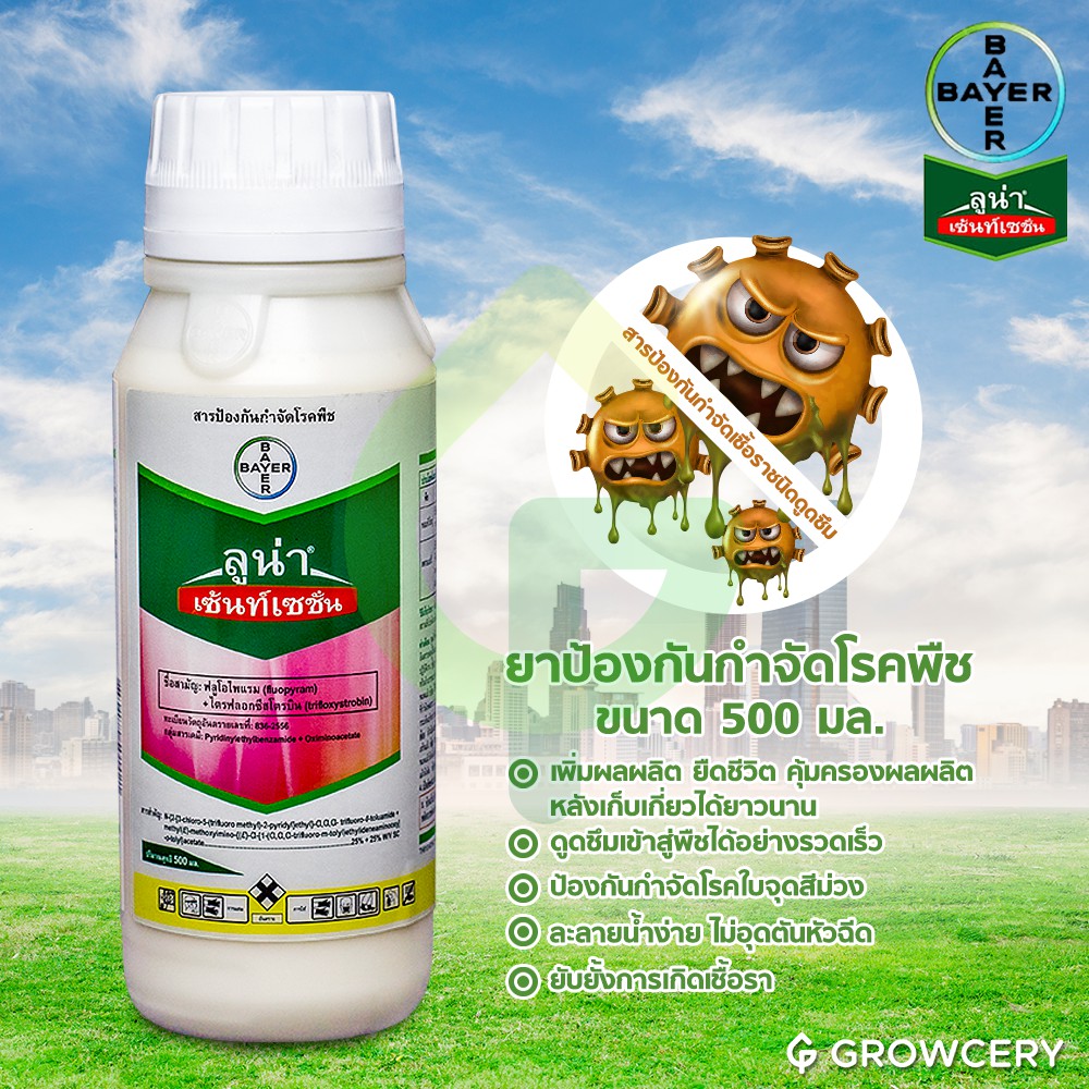 [G] ลูน่า เซ้นท์เซชั่น สารป้องกันกำจัดโรคพืช 500 มล. ยี่ห้อ BAYER (ป้องกันกำจัดโรคใบจุดสีม่วง) โดย GROWCERY