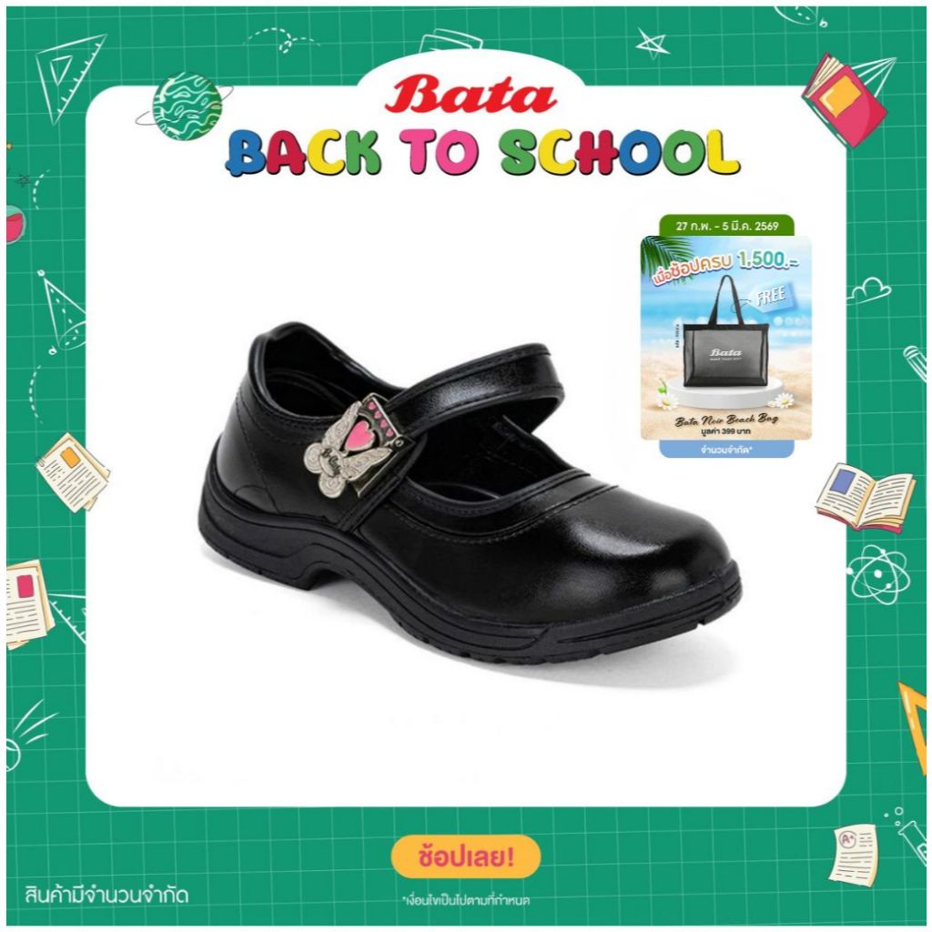 Bata B-Cutie รองเท้านักเรียนช่วงวัยประถมมัธยม เทคโนโลยีลดกลิ่นอับ สีดำ รุ่น Butterfly เด็กผู้ห ญิง 3416195 / 4416195
