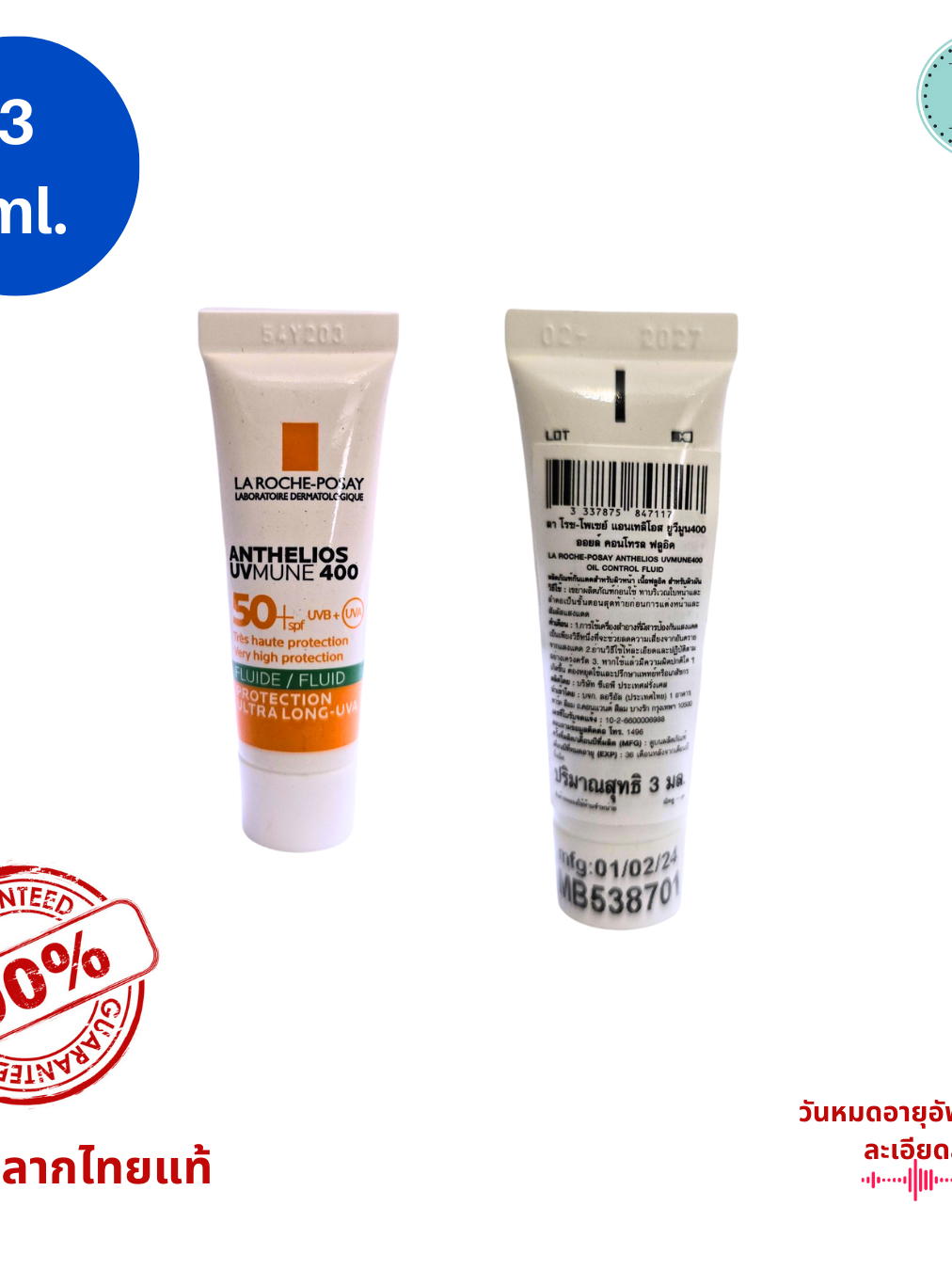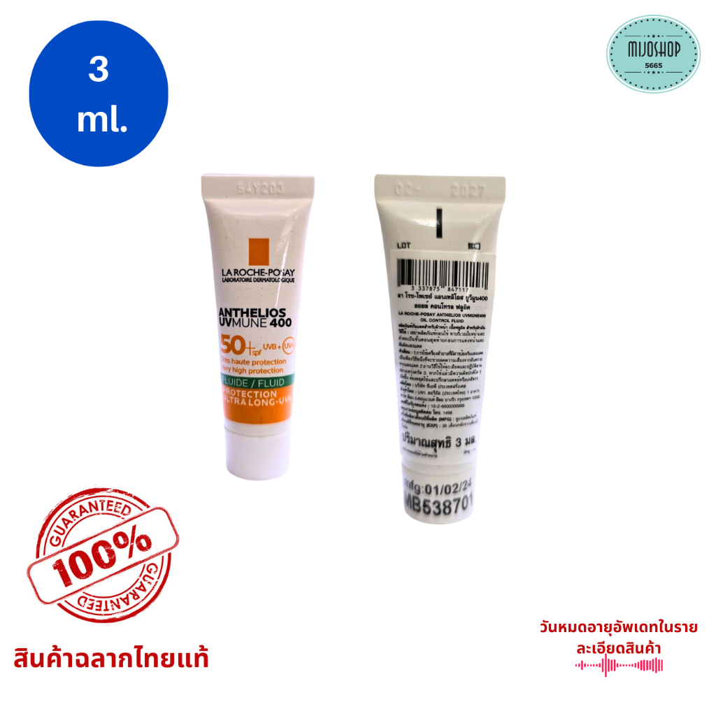 กันแดด ขนาดทดลอง 3 ml มี 5 สูตรให้เลือก