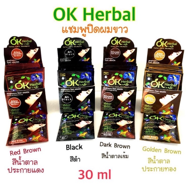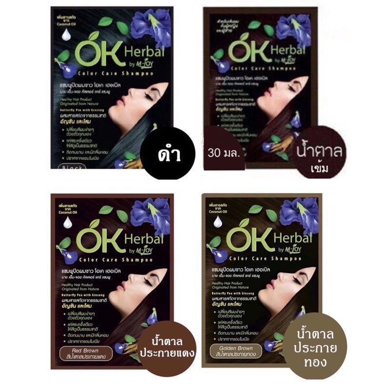 ส่งฟรี/มีไลฟ์ OK Herbal โอเค เฮอเบิล แชมพูปิดผมขาว เปลี่ยนสีผม