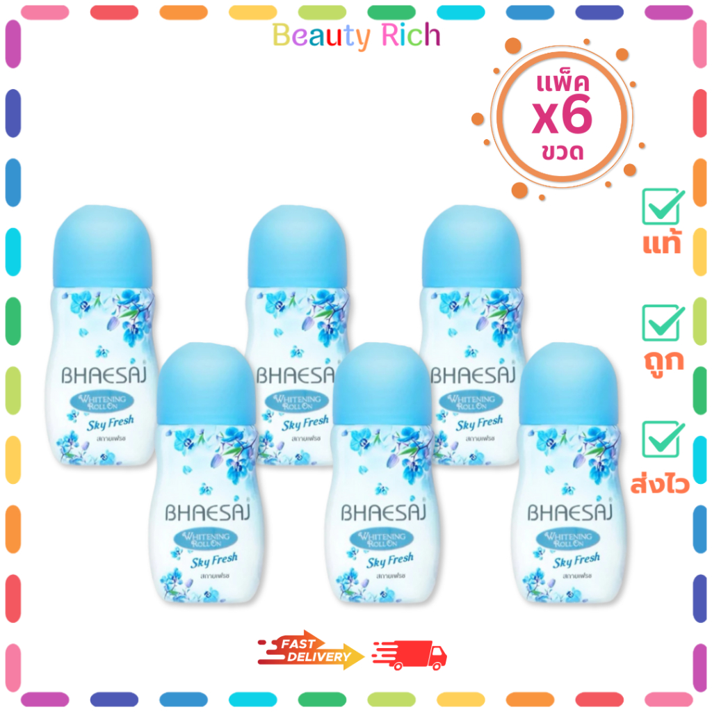 (แพ็ค 6 ขวด) Bhaesaj Whitening Roll On Sky Fresh (สีฟ้า) เภสัช ไวท์เทนนิ่ง โรลออน (35 ml.)